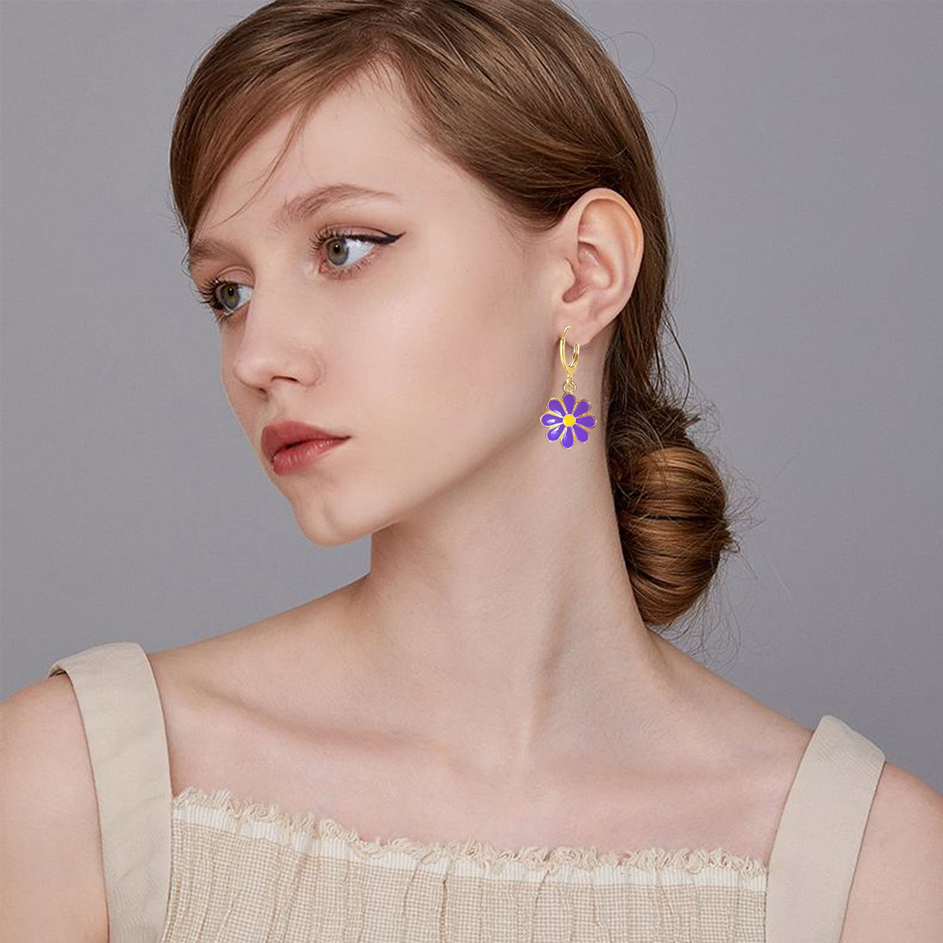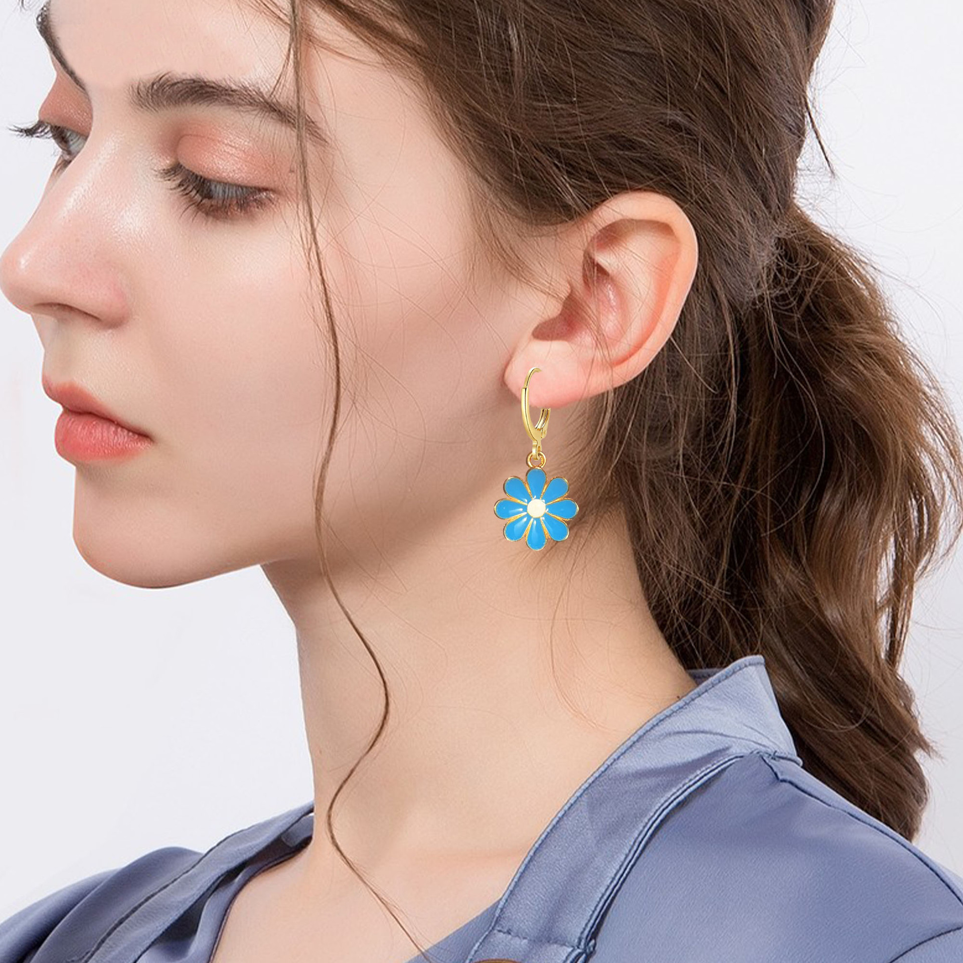 クロスボーダーの人気シンプルな多色の小さい菊の花の耳のボタンの個性のシンプルな風の耳飾りの女性の清新な文芸の多色