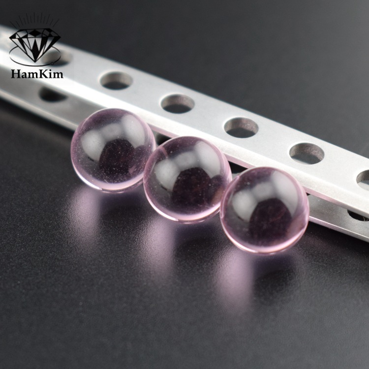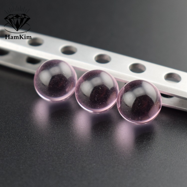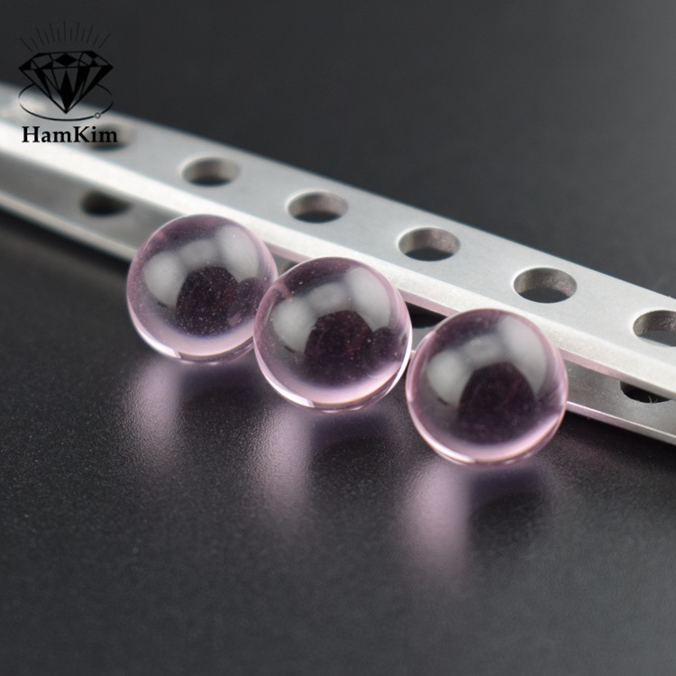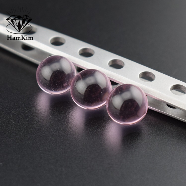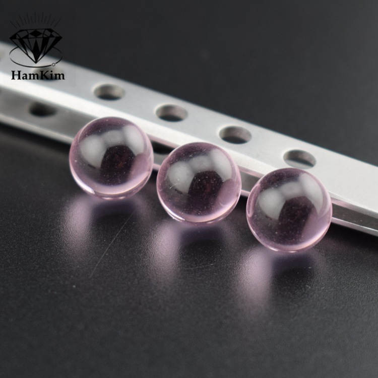 GL粉红玻璃圆珠无孔珠水晶玻璃石首饰工艺镶嵌配石玻璃珠厂家直销