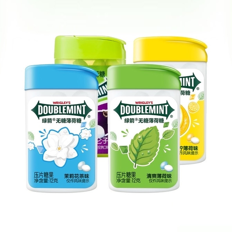 12g粒单选绿箭无糖薄荷糖休闲零食糖果约多味清新口气瓶装20可