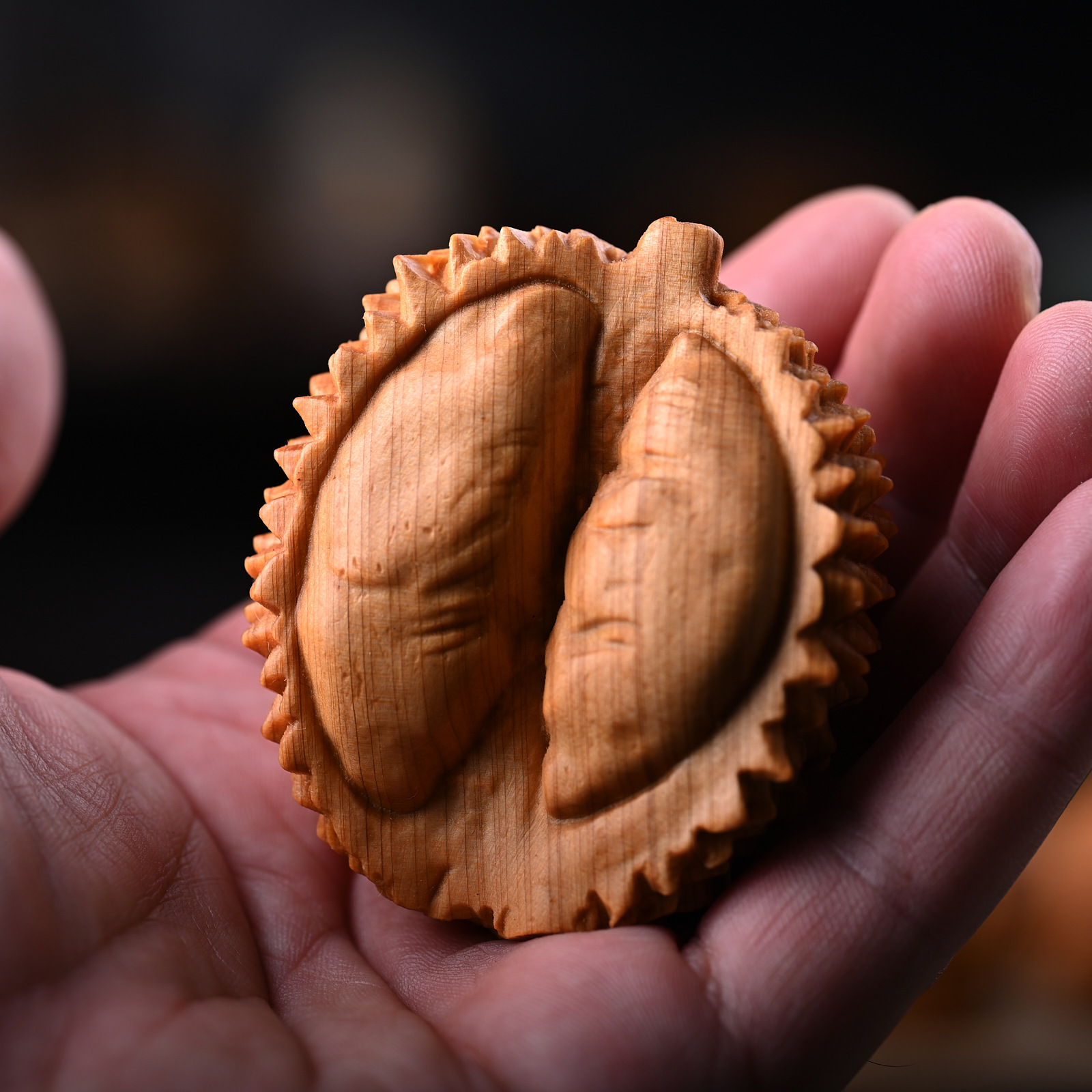 崖柏ドリアンは木彫りの文章をシミュレーションして、手をマッサージします。