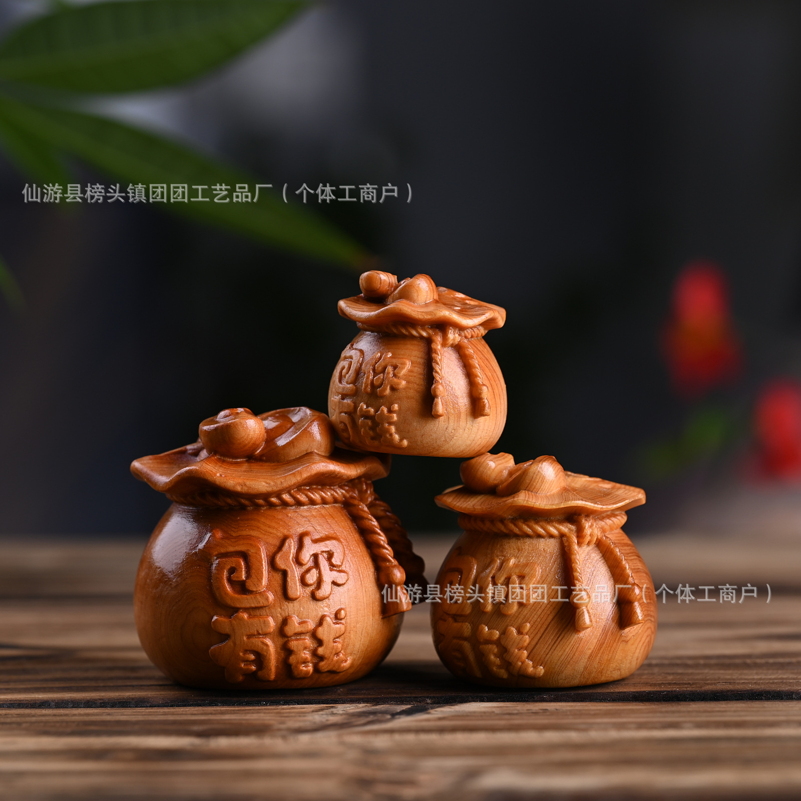 崖柏实木雕刻招财纳福圆福袋钱袋子文玩手把件桌面挂饰工艺品摆件