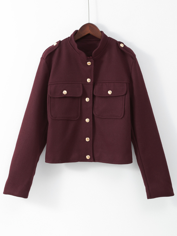 純色の単列ボタンの短い長袖コート欧米の越境秋冬新作立襟カジュアルファッションのレトロなジャケット