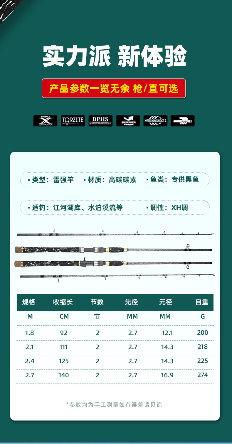 炭素雷強竿XH重雷炭素遠投竿直柄紡績車輪銃竿黒釣竿雷強竿