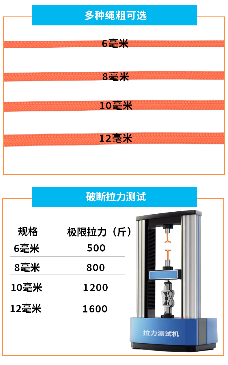 6mm 10m + 安全フック + ブレスレット、6mm 15m + 安全フック + ブレスレット、6mm 20m + 安全フック + ブレスレット、6mm 30m + アンペア