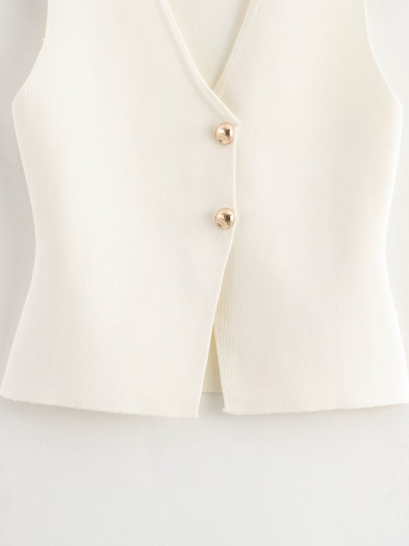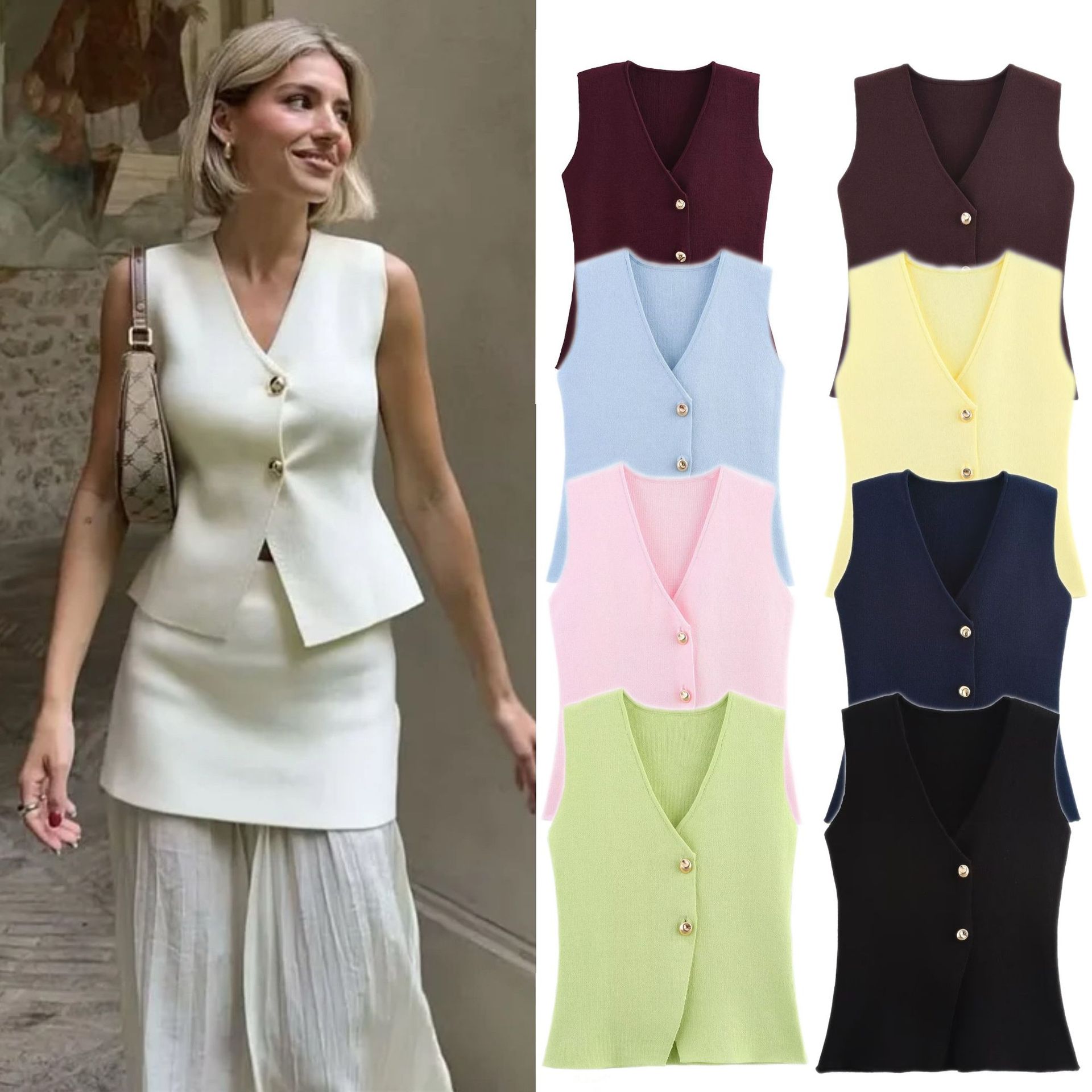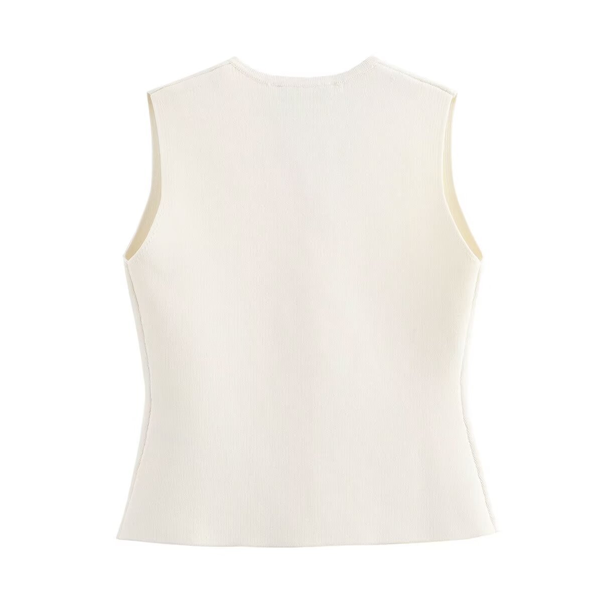 跨境2024秋欧美跨境女装时尚金色纽扣饰针织背心式上衣 w063