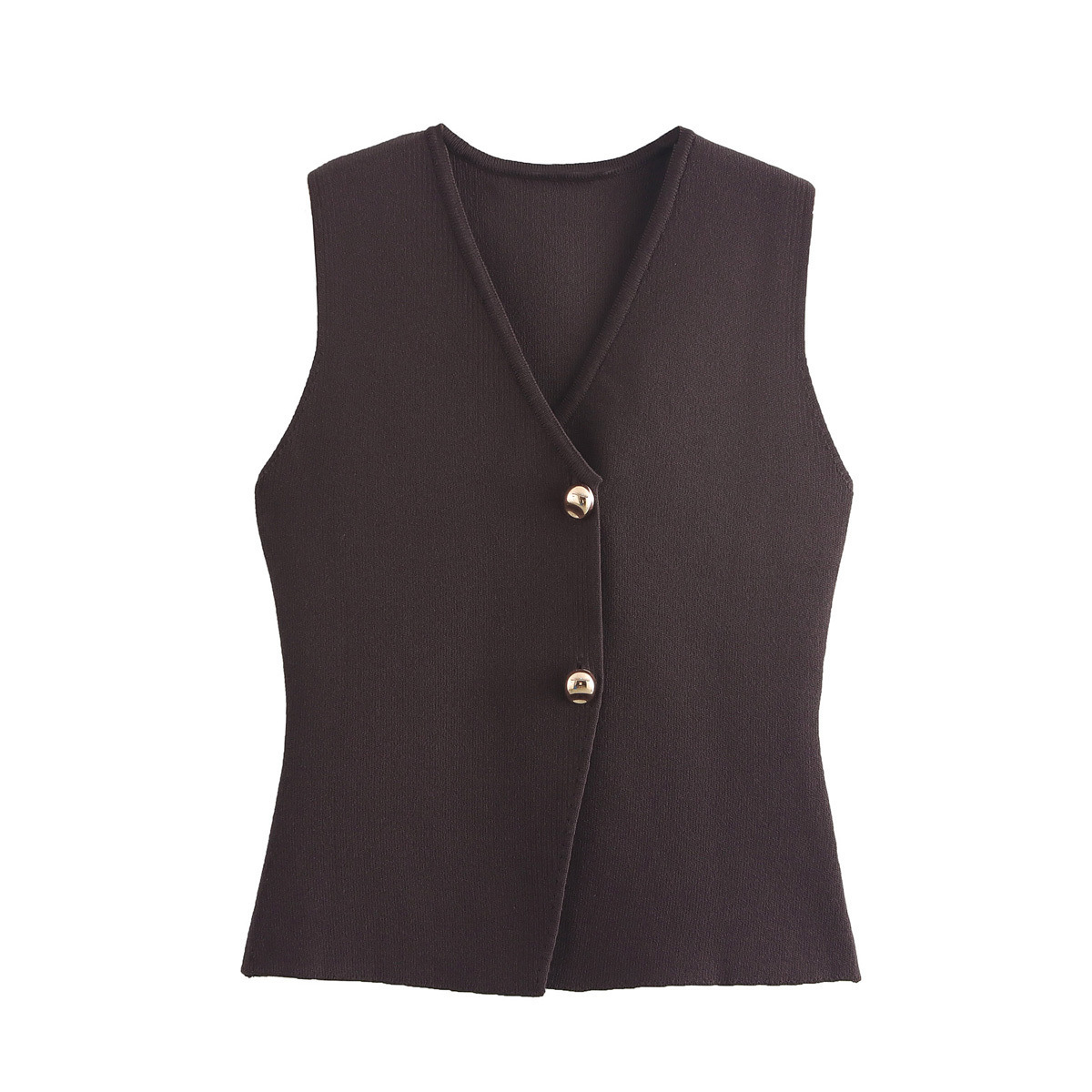 ZA速卖通人気商品、越境EC向け欧米風レディースファッションベスト、ゴールドボタン飾り付き平編みベスト