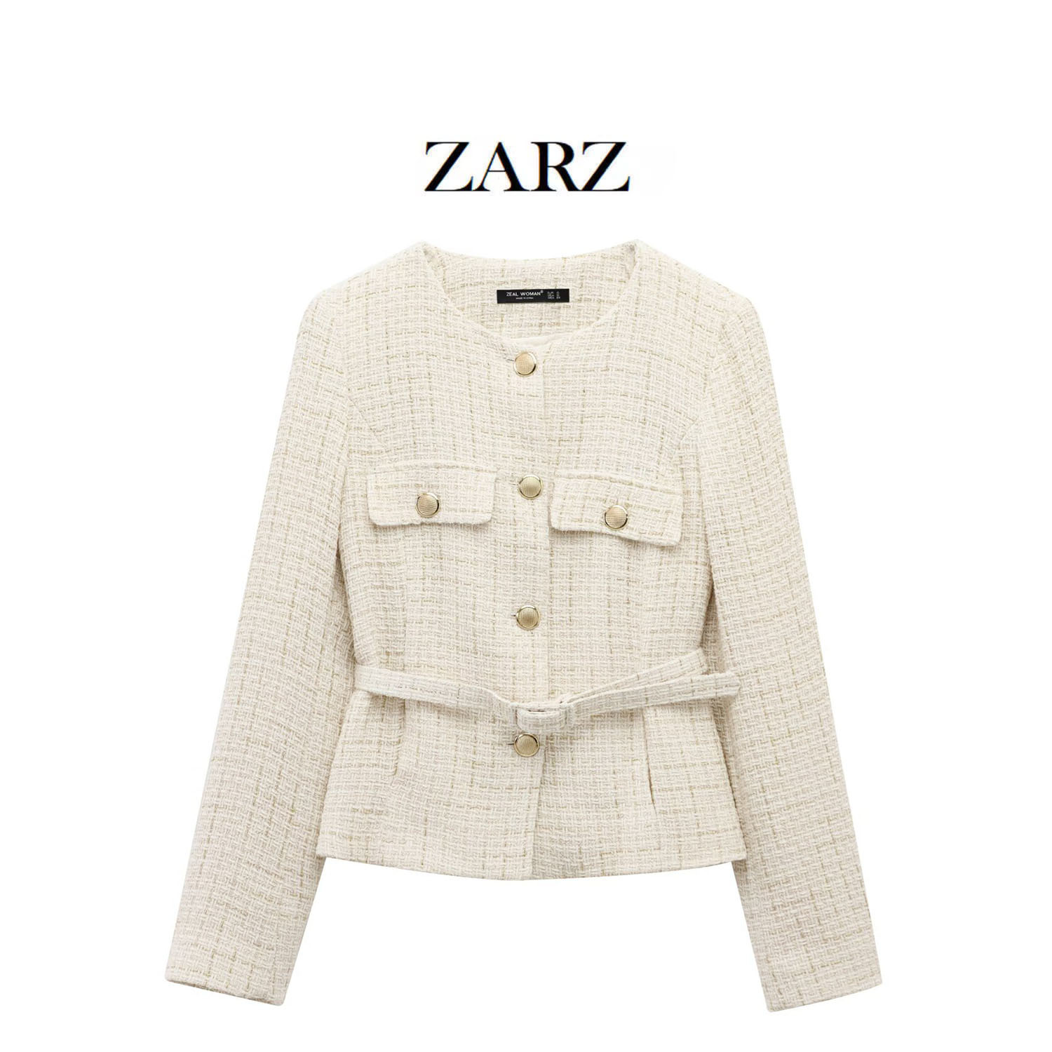 ZARZ自作欧米風新型婦人服系ベルトの質感長袖丸首カジュアルスーツジャケット