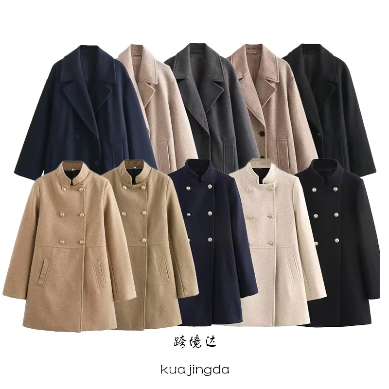 国境を越えた欧米の卸売り2024冬のロングコート欧米風女装フランスファッションのダブルジャケット