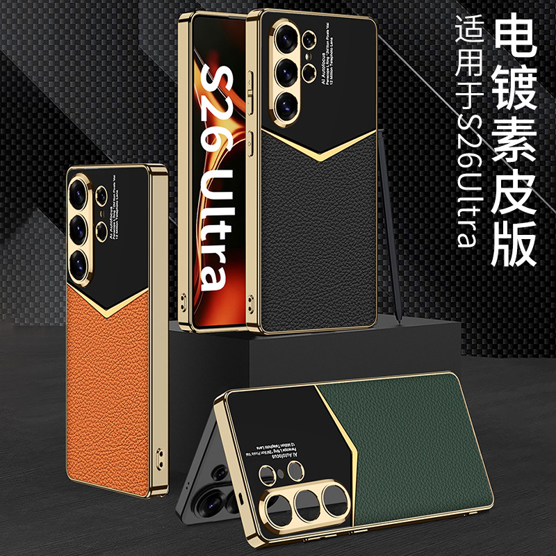 适用三星S26Ultra手机壳电镀素皮爵士S26皮套高级感超薄跨境外贸