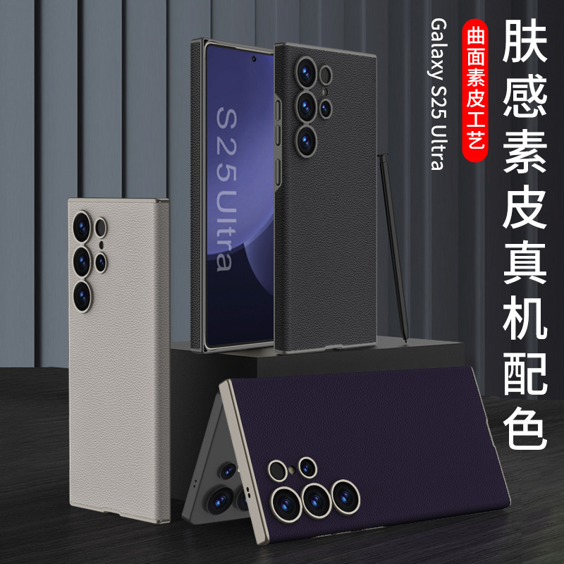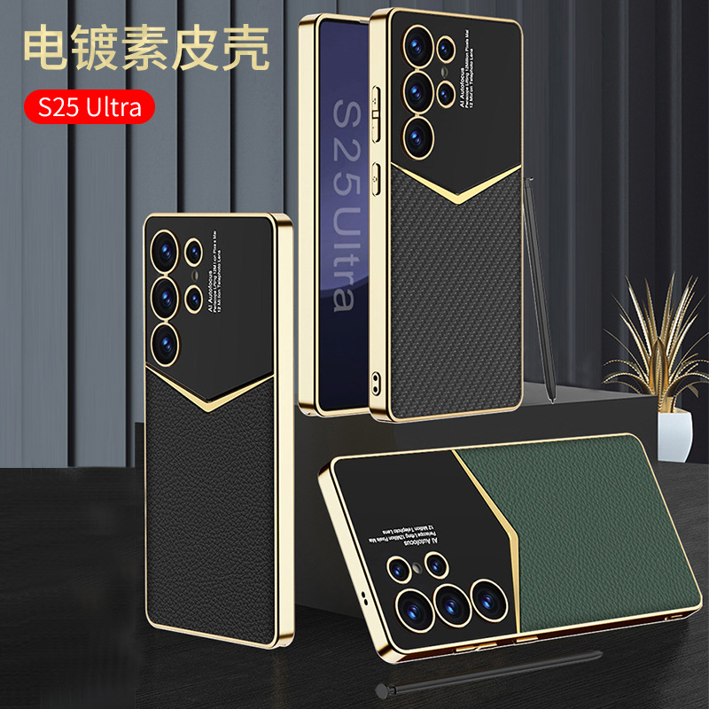 适用三星S25Ultra手机壳电镀素皮爵士S25保护s25plus超薄防摔简约