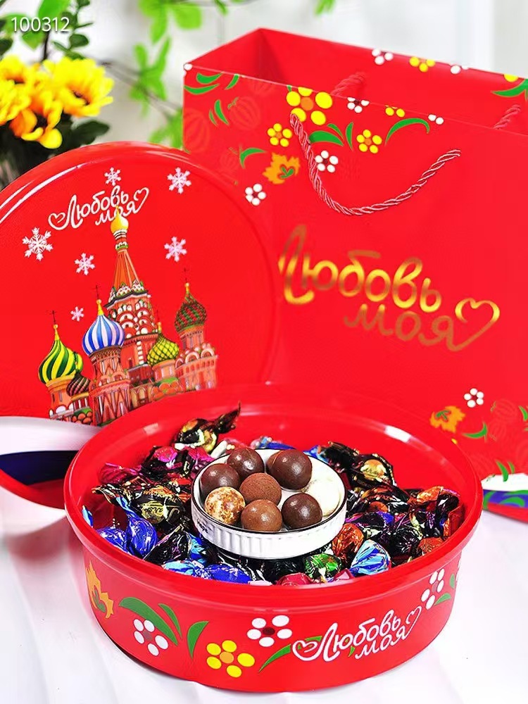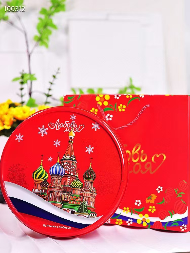 ロシア風人形クリーム味クッキーギフトボックス鉄箱スナッククッキー400g包郵便
