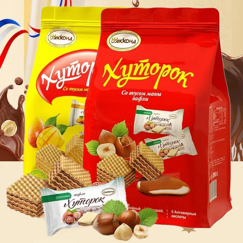 俄罗斯威化饼干进口阿孔特牌芒果榛子仁巧克力奶酪味休闲零食品