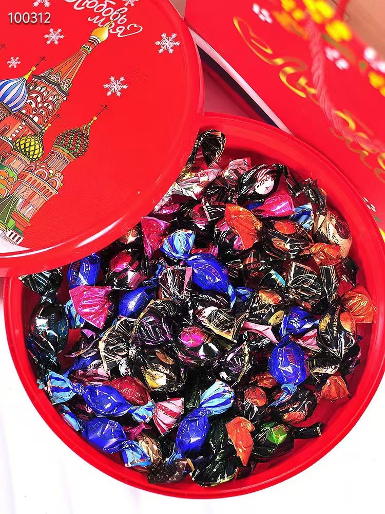 俄罗斯进口大头娃娃酥糖芝麻花生巧克力糖爱莲巧糖果新年夹心喜糖