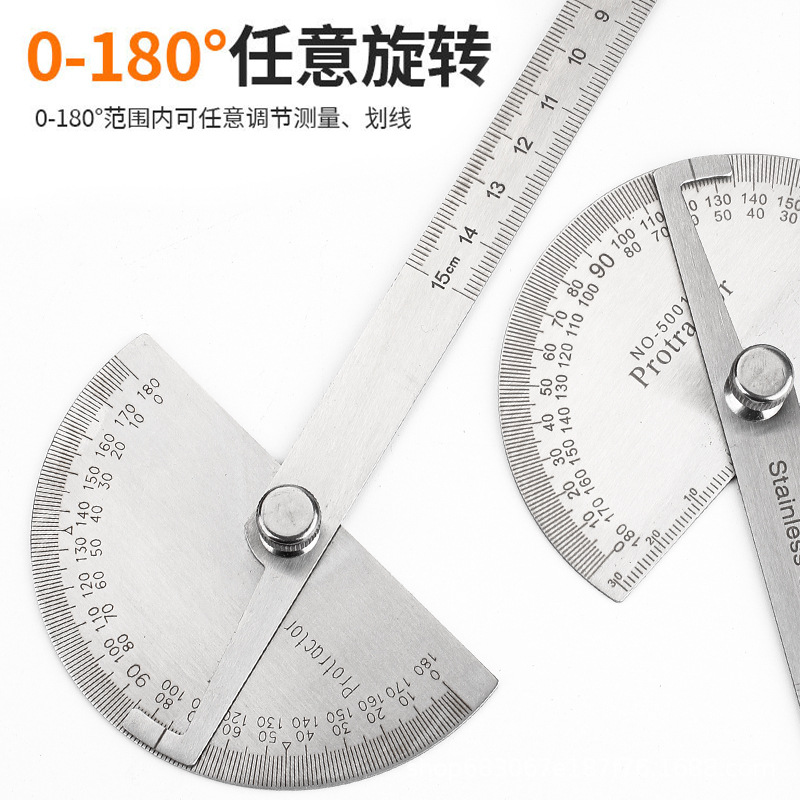 新品角度定規シングルアームステンレス角度定規180度調整式半円分度定規角度器角度定規