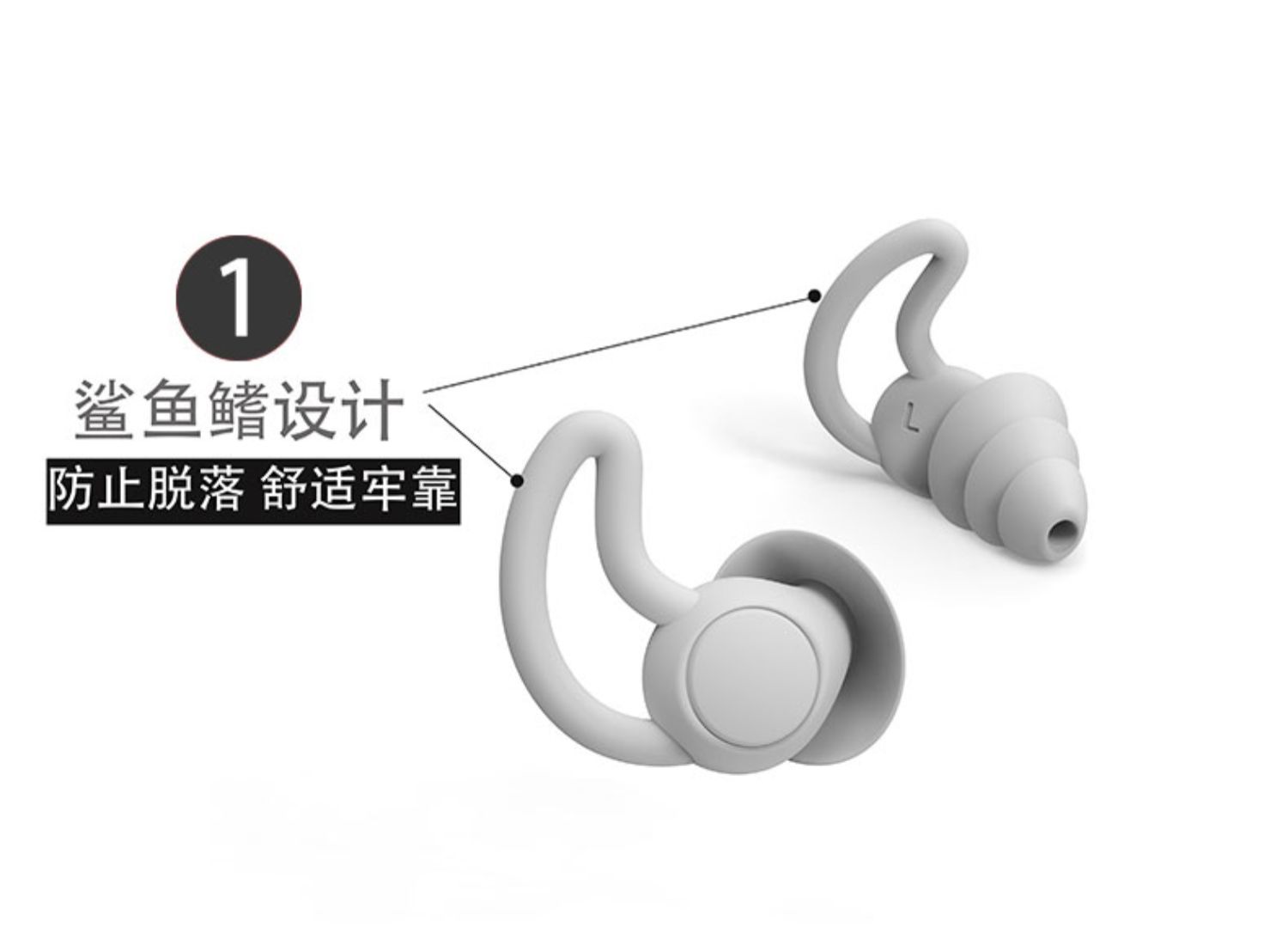 サメのひれの耳栓の騒音低減のシリカゲルの箱の防水の超軟三層の保護サメのひれの耳栓のメーカーのクロスボーダーの専用供給