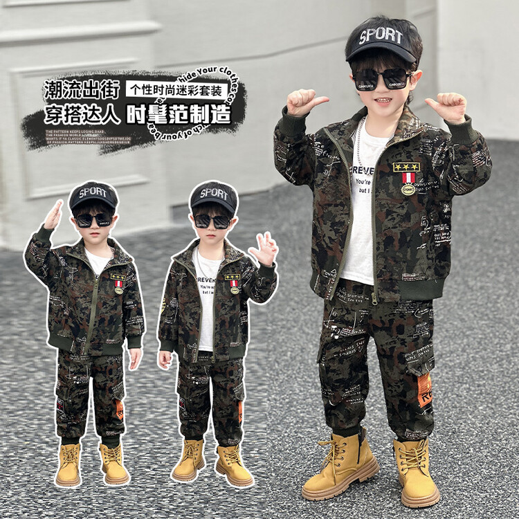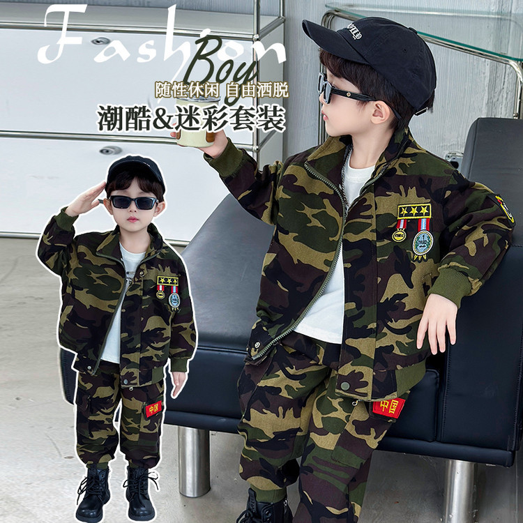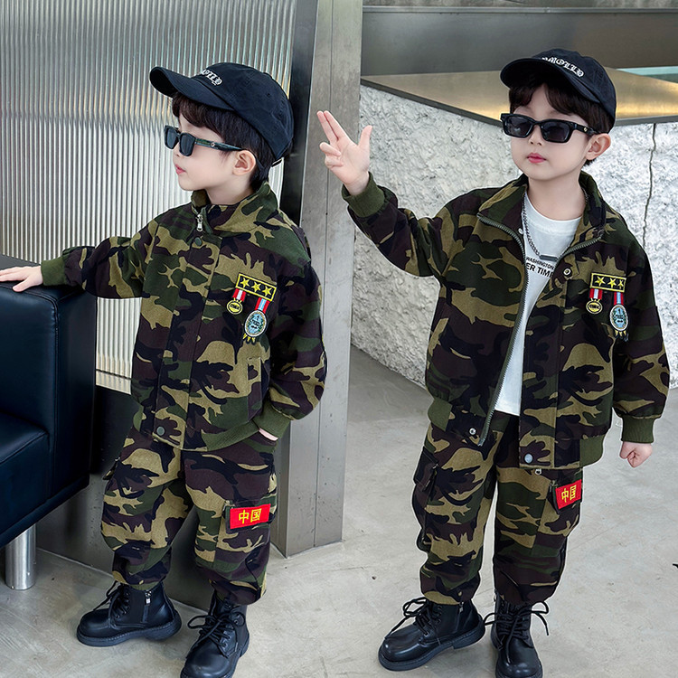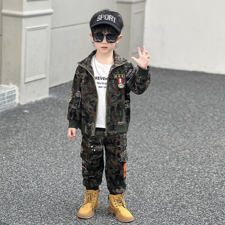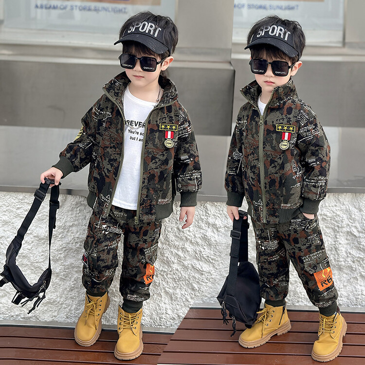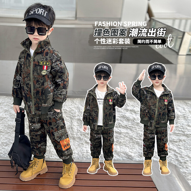 迷彩コットンスーツ,帽子,シングル迷彩スーツ,帽子+迷彩コットンスーツ,ハオタオボーイ&メダル迷彩春シングルスーツ
