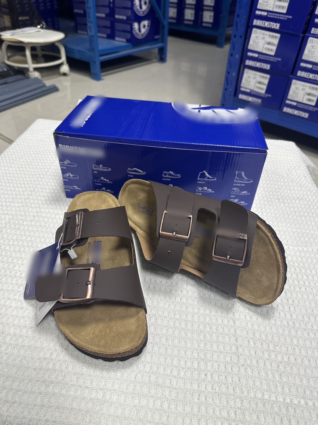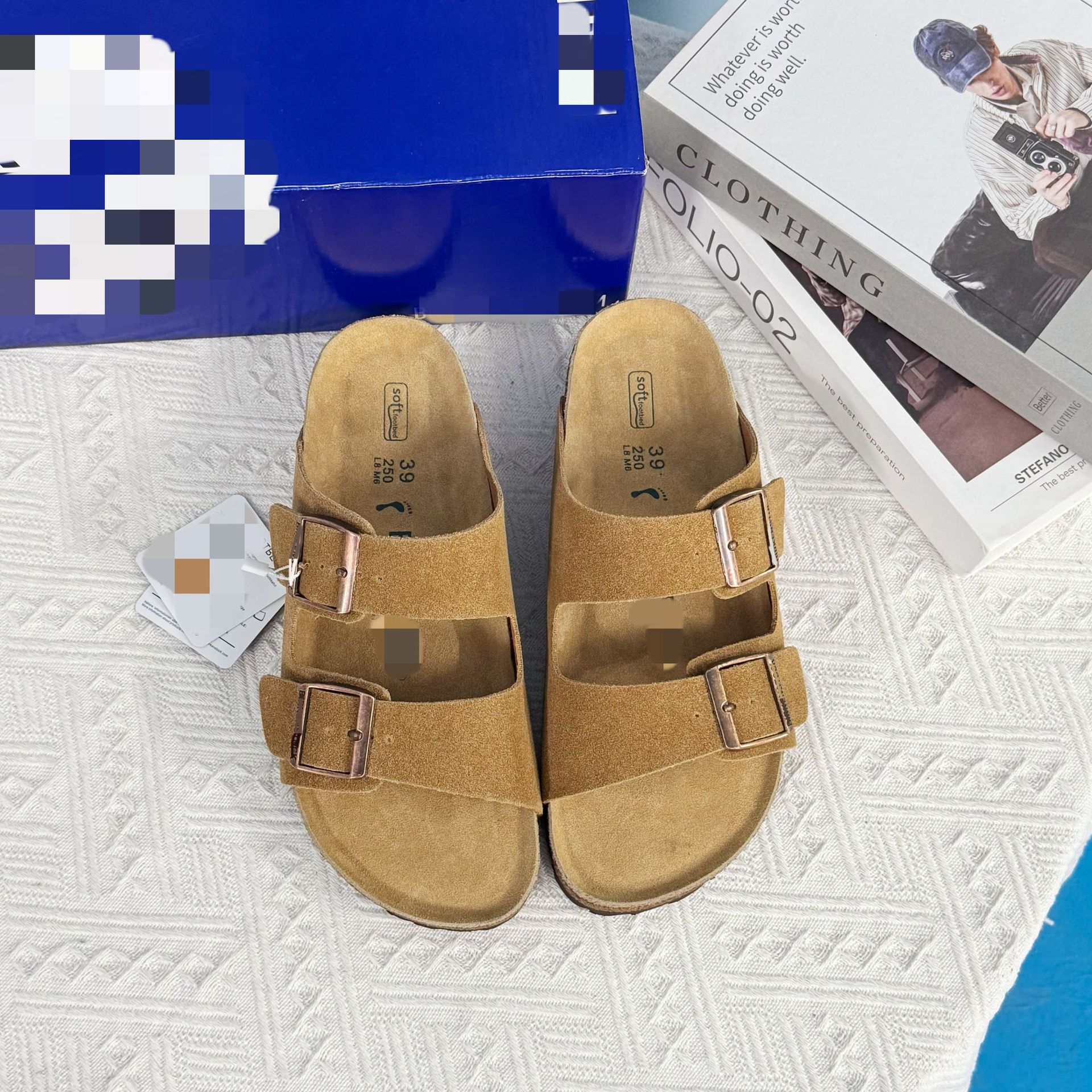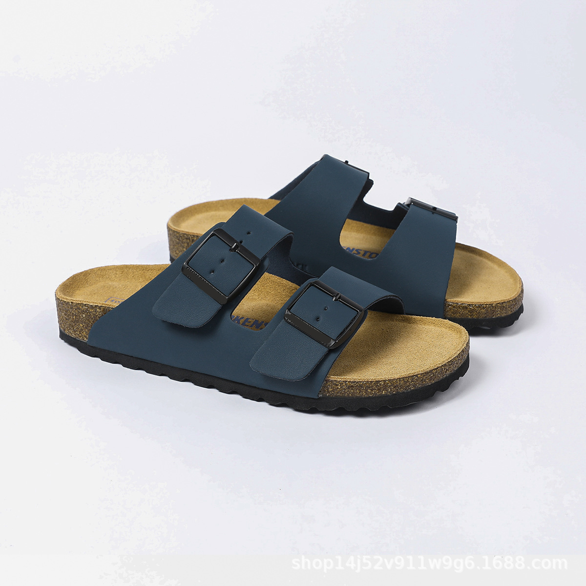 Arizonaブランコ靴ダブルボタン二字本革コルクスリッパ厚い底ボケン靴男女同項サンダル