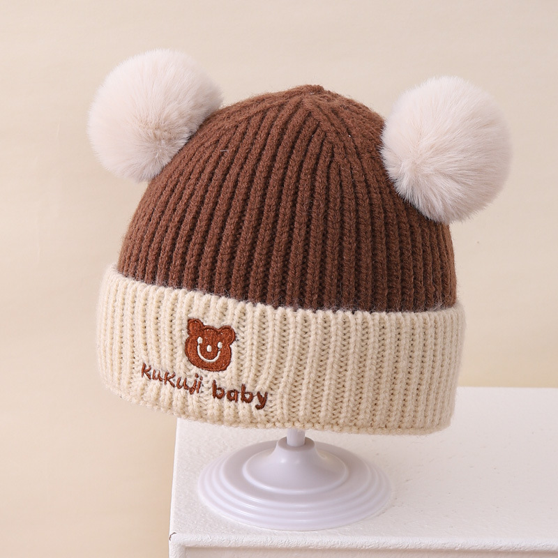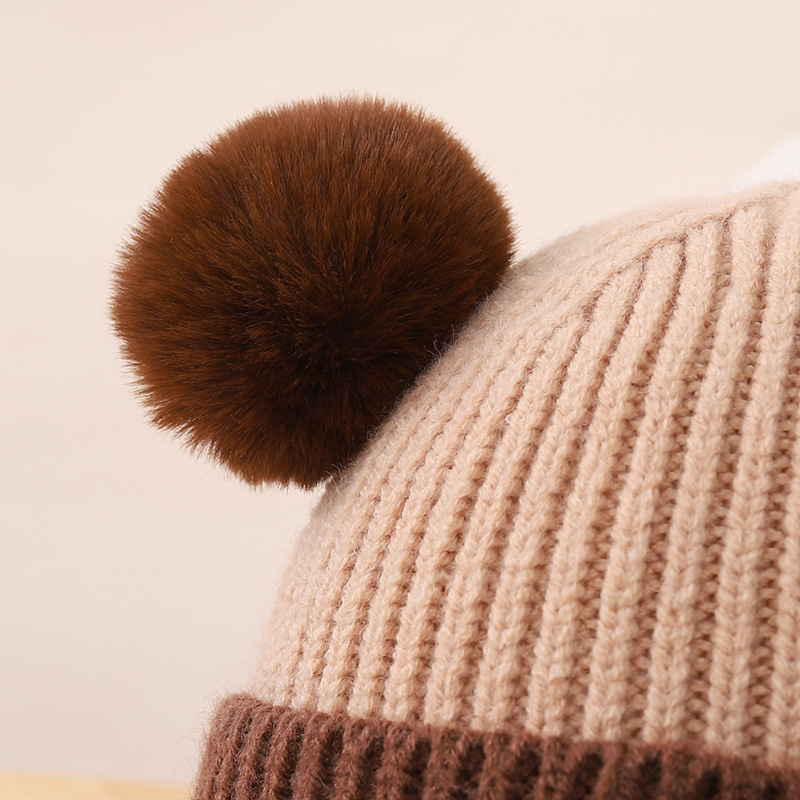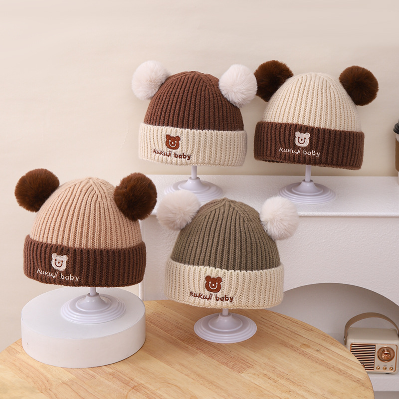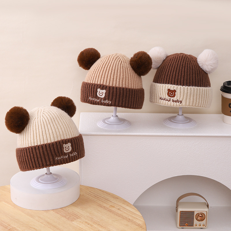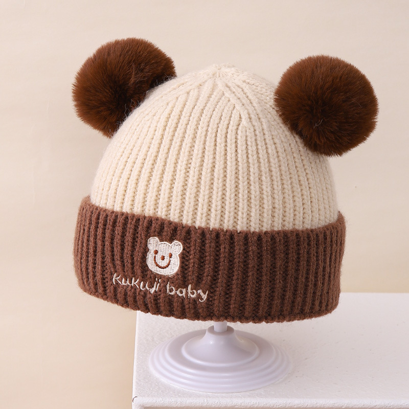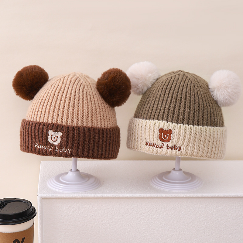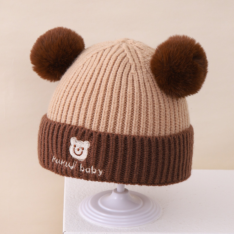漫画の熊の耳のマフラーの帽子の2つのセットのかわいい赤ちゃんのニットの帽子の保温は子供の毛糸の帽子を厚くします。