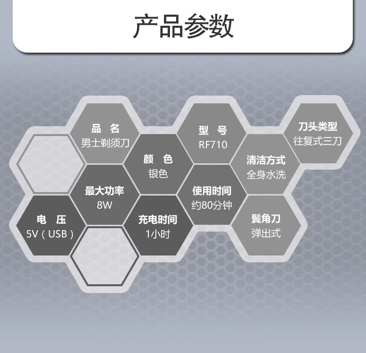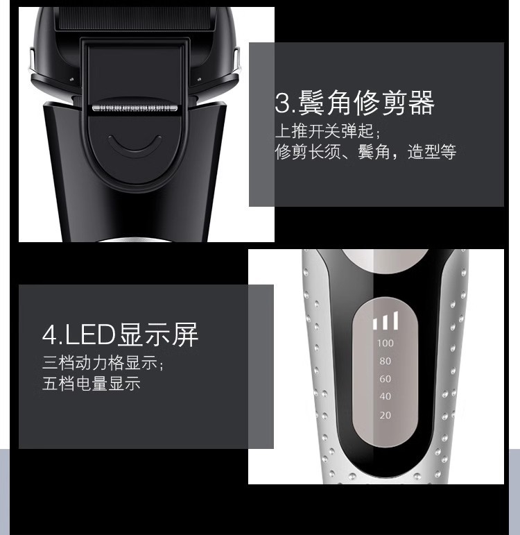 LED数显浮动五刀头往复式电动胡须刀全身水洗干湿两用刮胡剃须刀