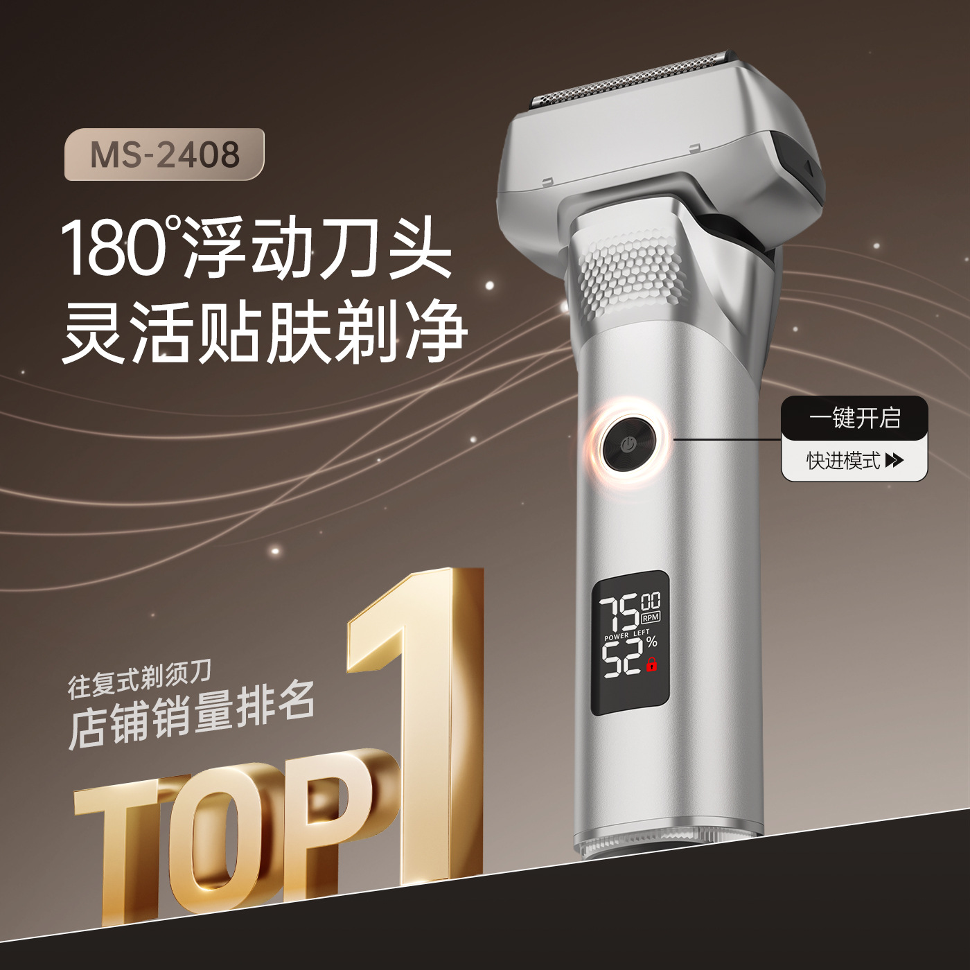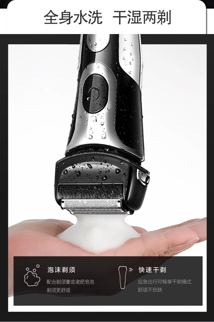 新爆款 往复式剃须刀悬浮浮动胡须刀男士全身水洗LED数显电动刮胡