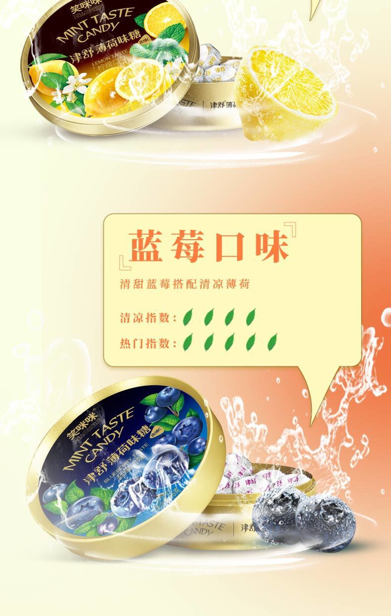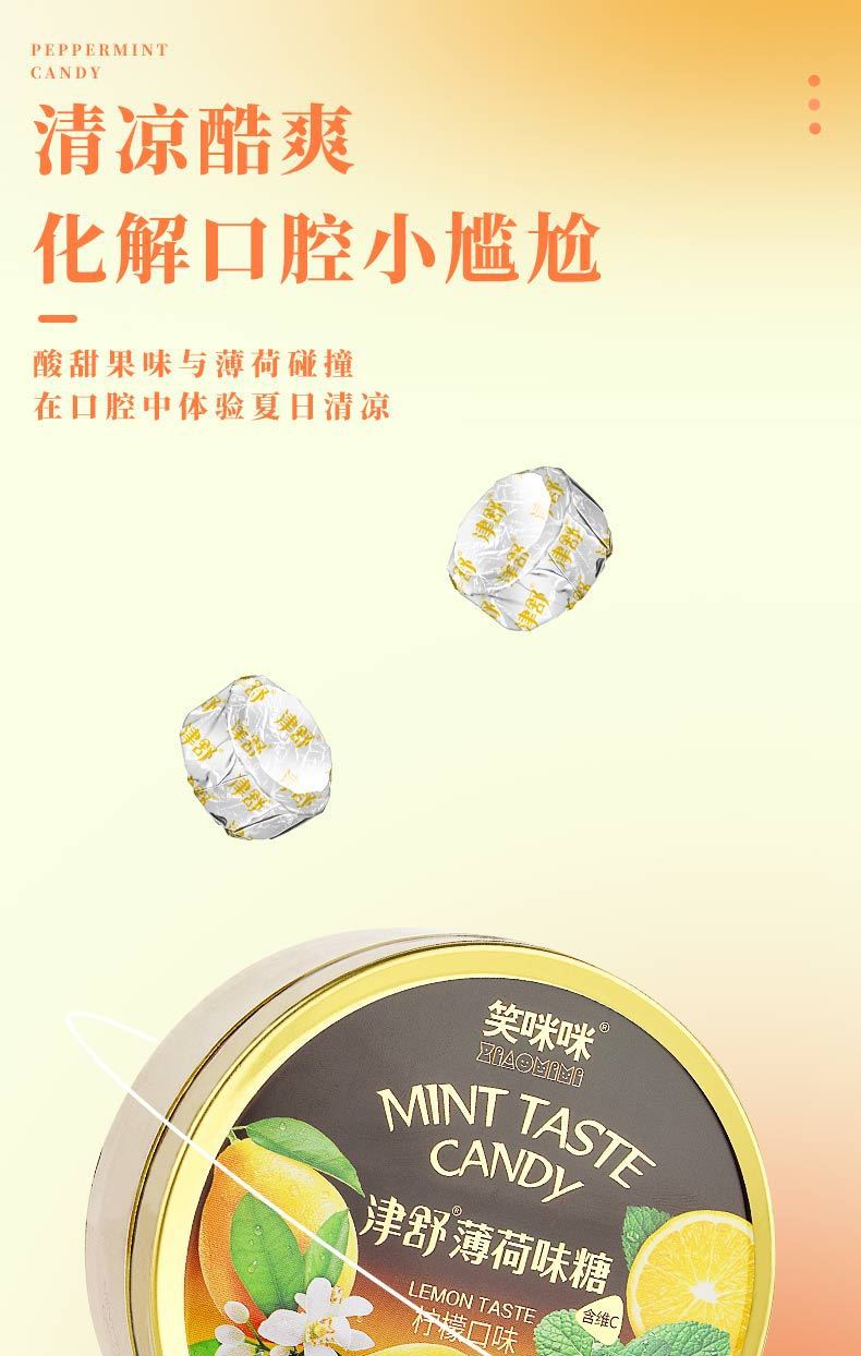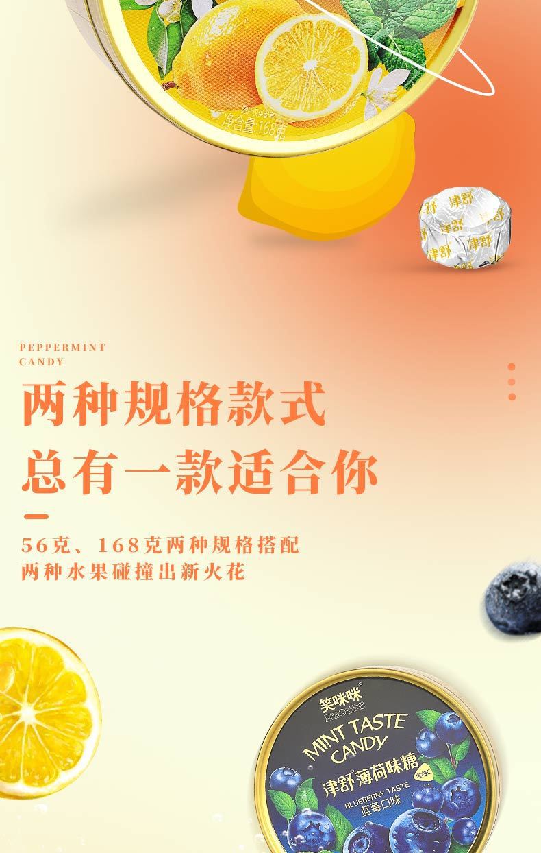 笑咪咪津舒キャンディジュースミントキャンディビタミンC高配合レモンブルーベリー子供向けおやつキャンディ鉄箱ハードキャンディ
