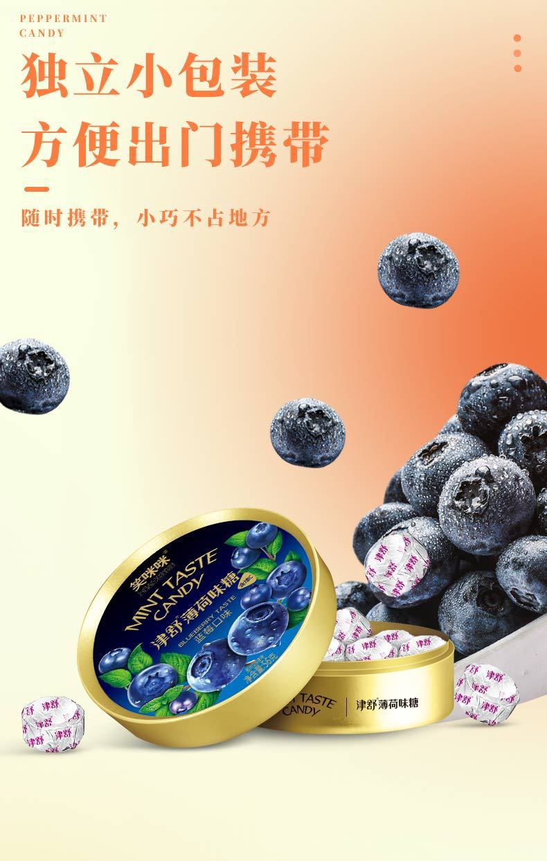 笑咪咪津舒ジュースミントキャンディーのど飴ビタミンCレモンブルーベリー子供用スナックフルーツキャンディー鉄箱入りハードキャンディー
