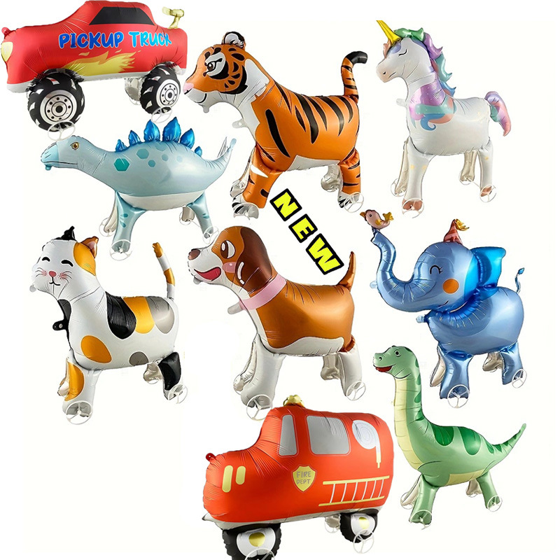 4D車輪付き動物アルミ膜風船大サイズ立体象創意ローラー風船露店玩具パーティー装飾