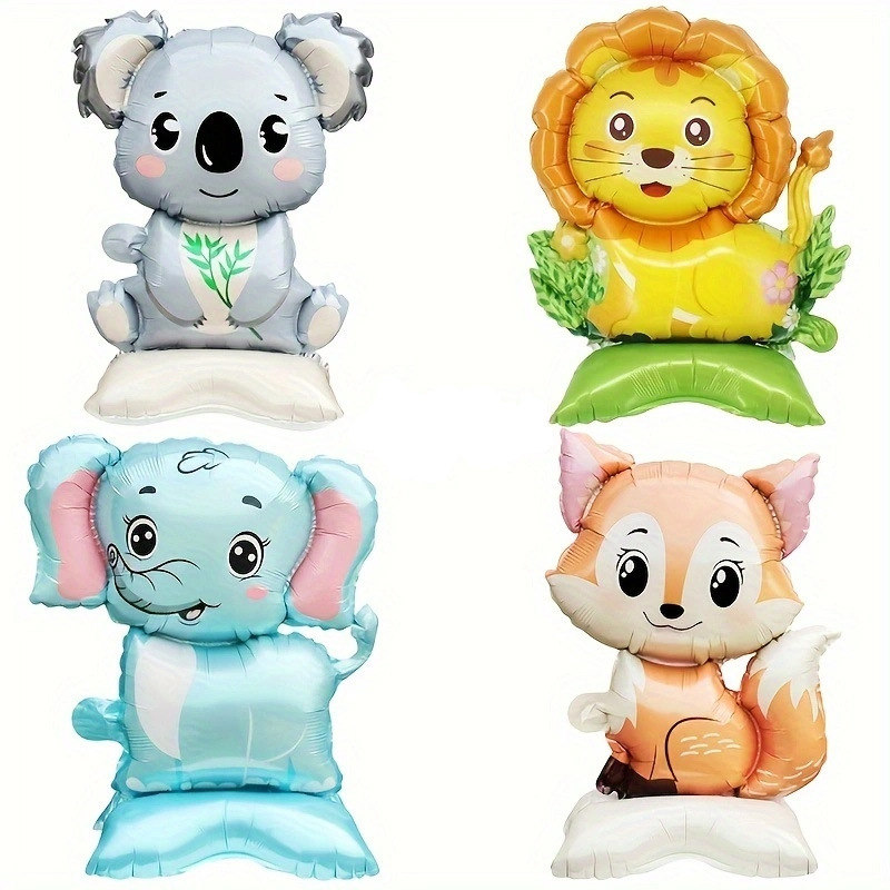 小さな台座に立つ恐竜ライオンキツネ造形アルミ膜風船ジャングル漫画動物テーマパーティー装飾