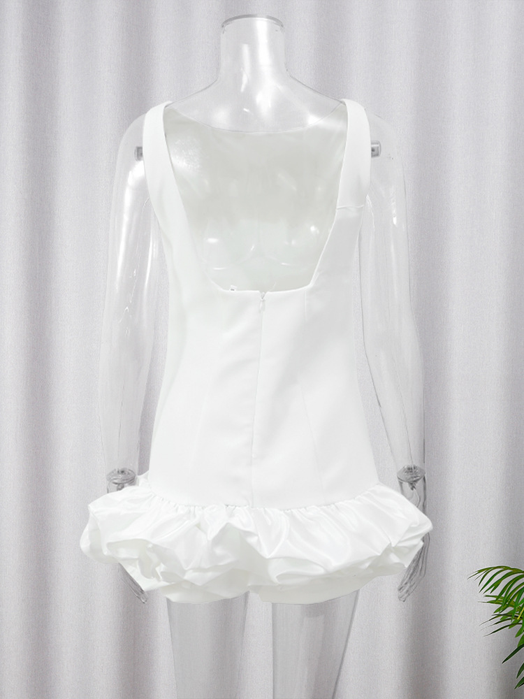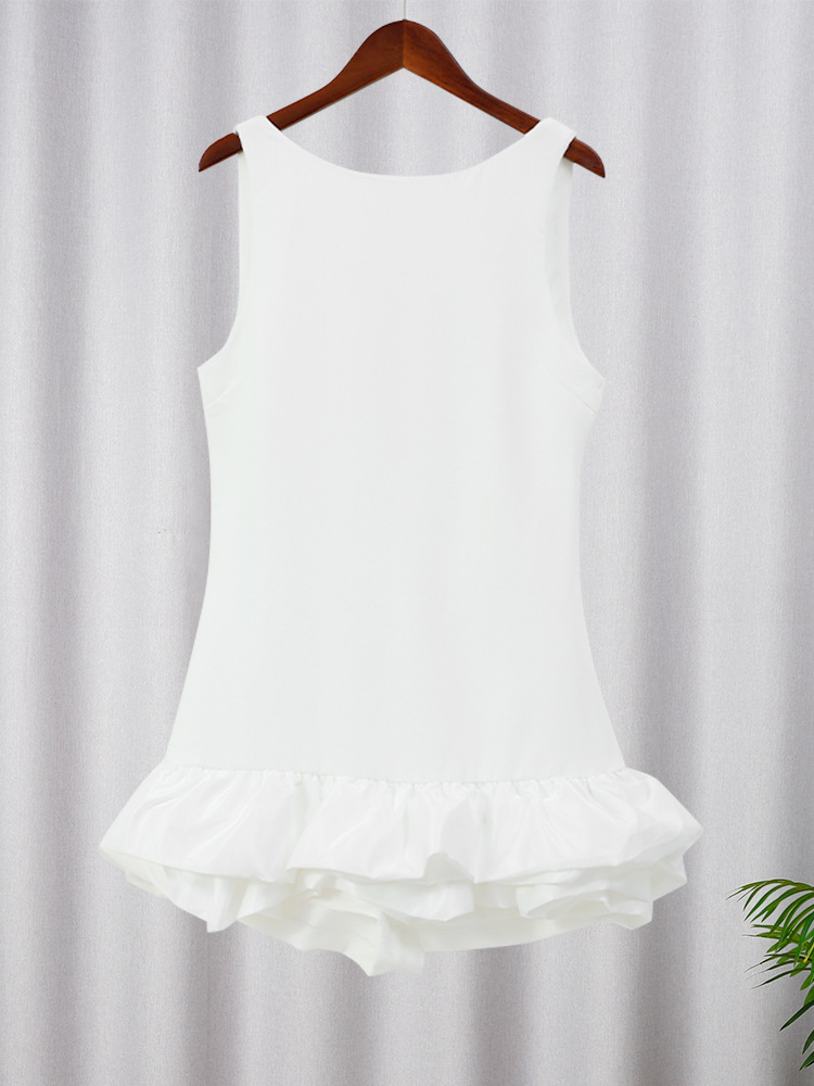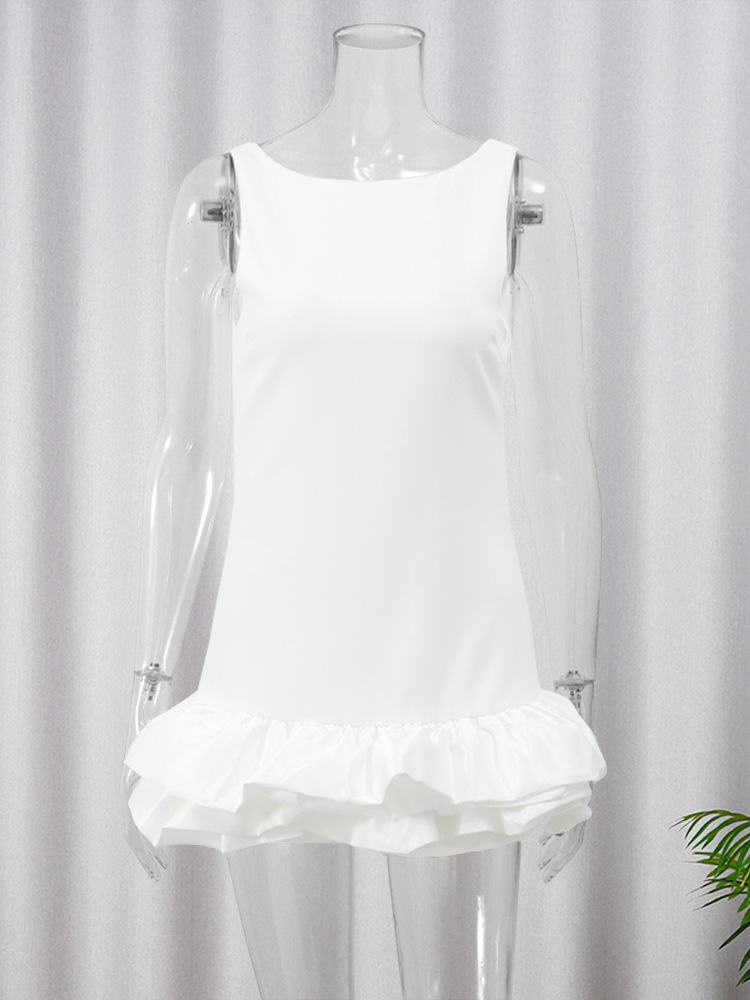 欧米のクロスボーダーの純色の丸首の袖なしの木の耳元のワンピースのスカートのファッション的なセクシーな腰を収めてお尻のミニスカートを包みます。