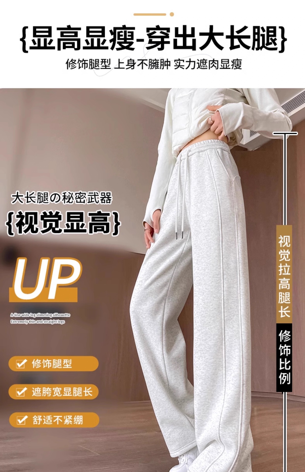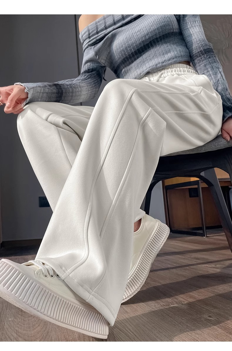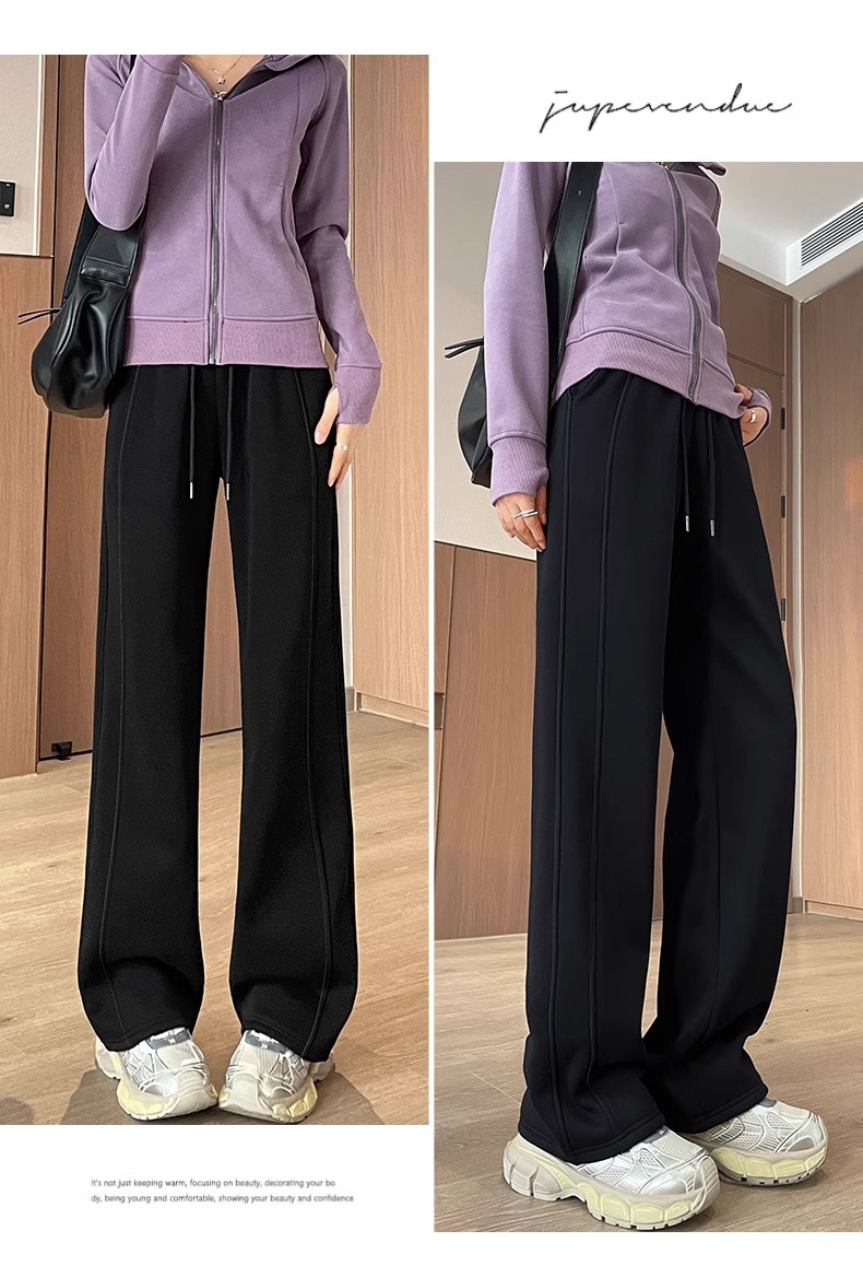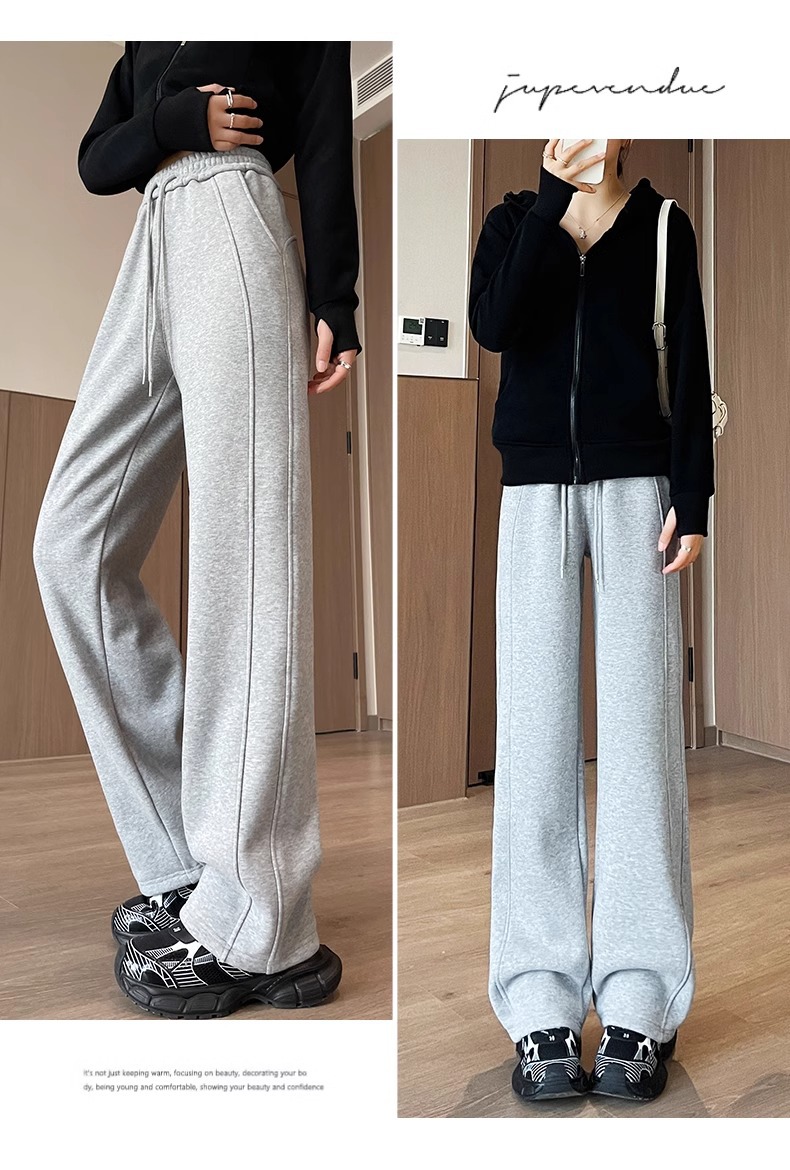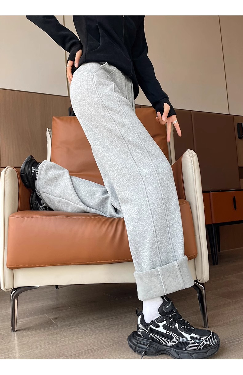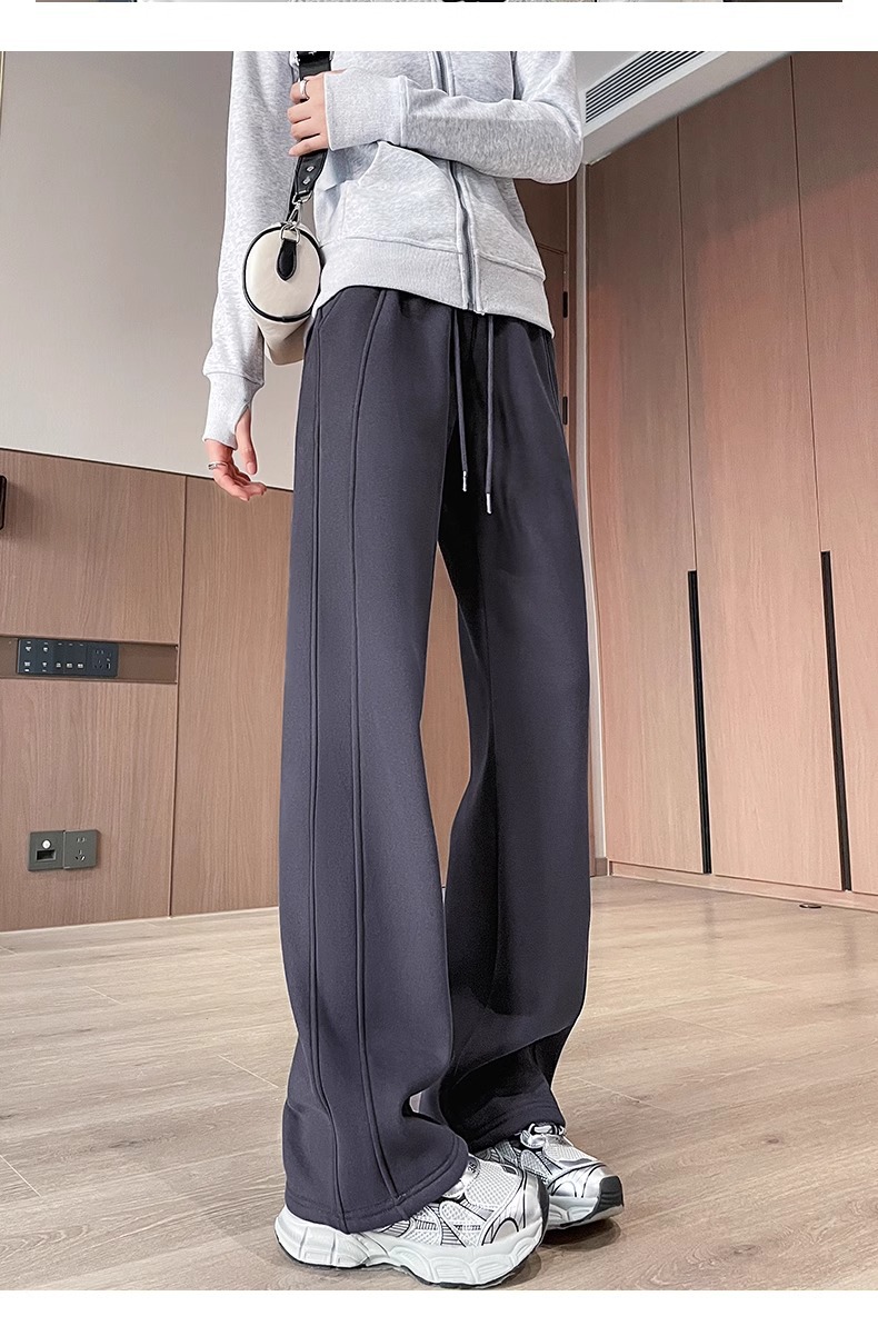狭い版のバナナのズボンの女性の2025新型の春と秋のベルベットのカジュアルなストレートのスポーツのズボンの灰色の衛のズボンの高い腰の広足のズボン