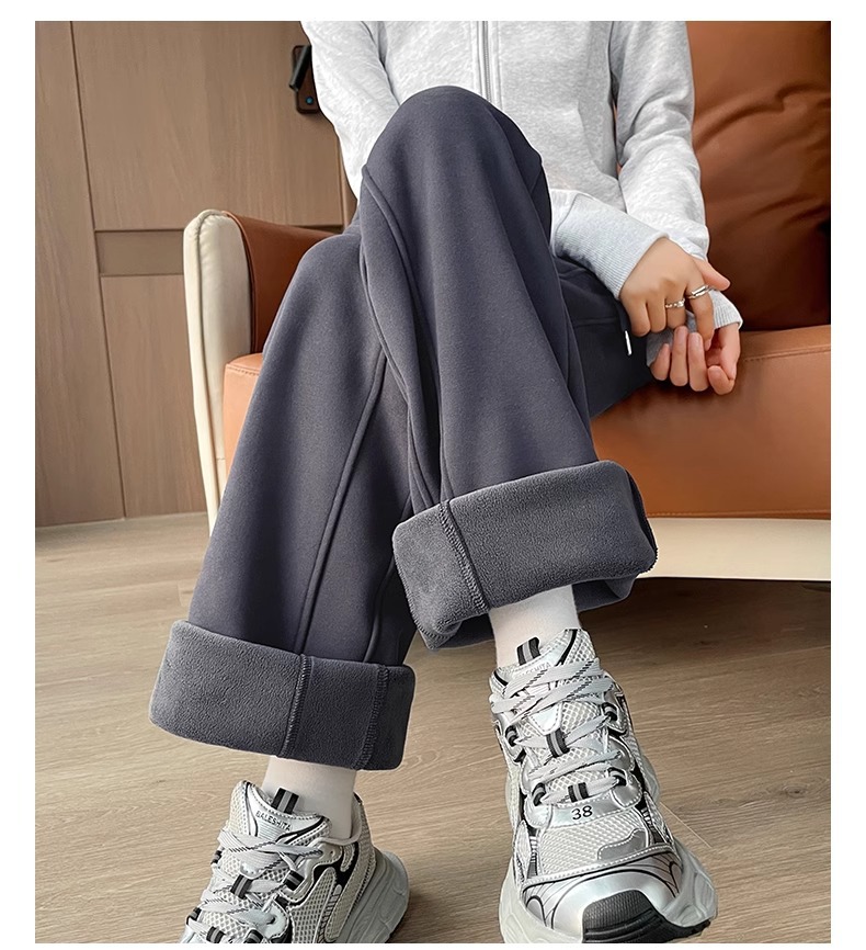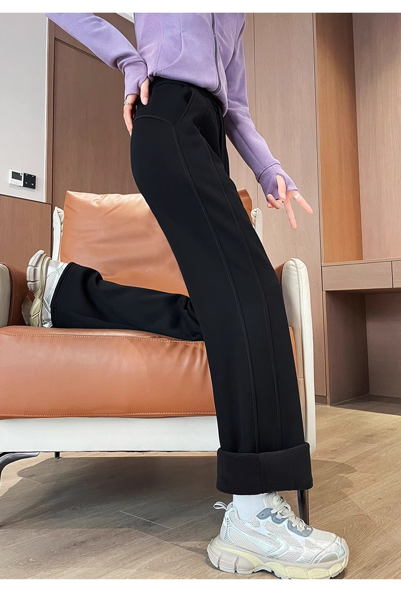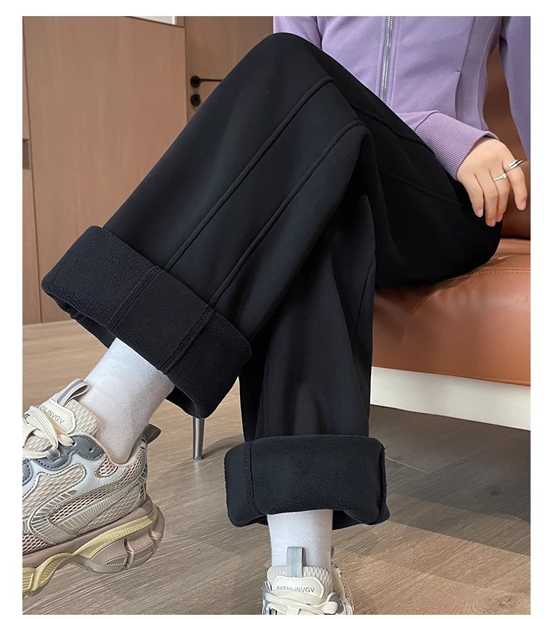 ワイドパンツの女性は冬にベルベットをつけてスポーツパンツの狭いバージョンのストレート感のあるズボンの子羊のベルベットの外に防風綿のズボンを着ています