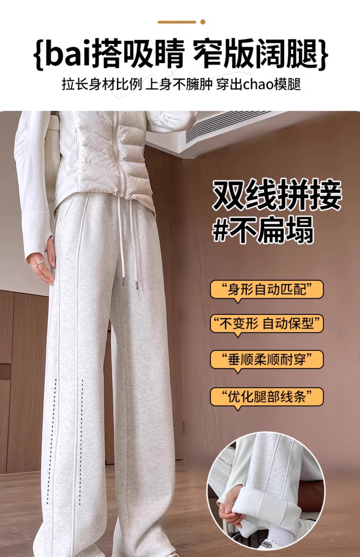 白いジーパンの女性のストレートな筒の2025年の春と秋のベルベットの新型の米の白い小柄なデザイン感の狭い版のワイドパンツ