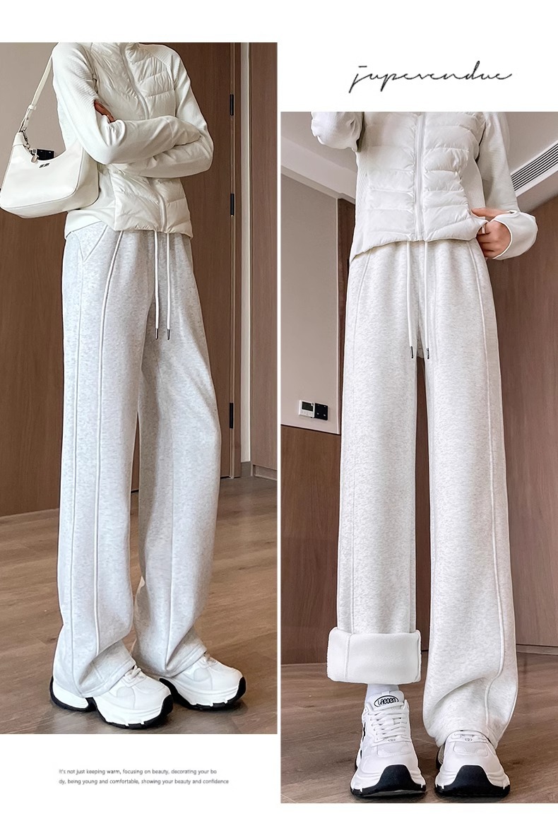 スポーツパンツの女性秋冬2024の新しいペンダント感とベルベットのワイドパンツ冬の外に狭いバージョンのバナナのカジュアルパンツを着ています