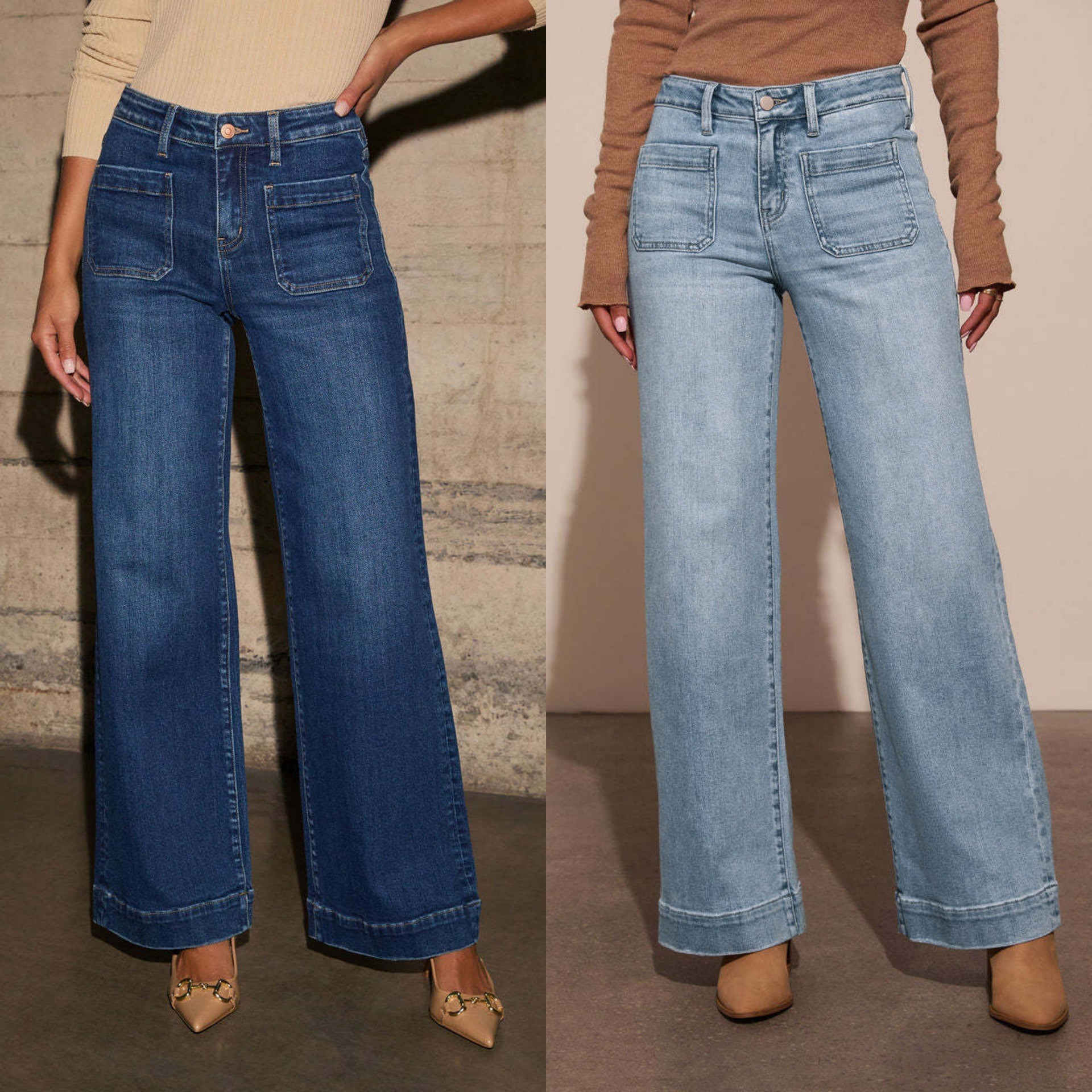 2025新型国境を越えたアマゾン独立駅の対外貿易女性式デニムパンツ水洗いデニムワイドパンツ