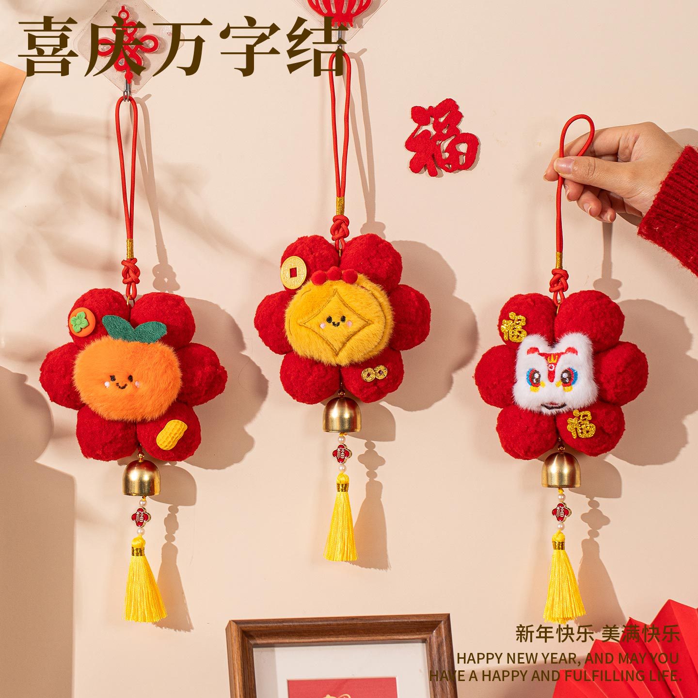 新年春节装饰品小红花创意毛球挂饰过年入户门把手车载挂件氛围感