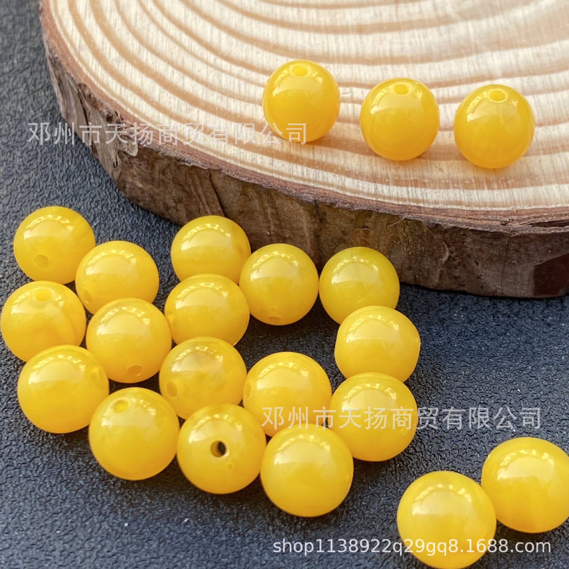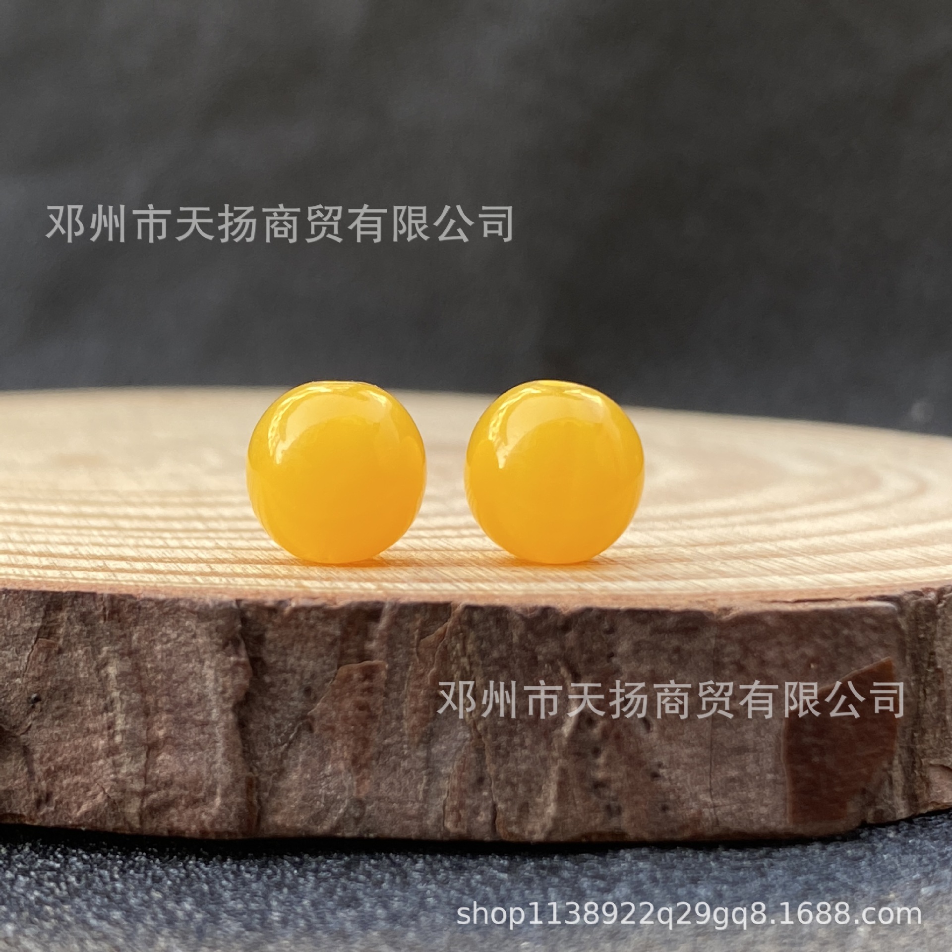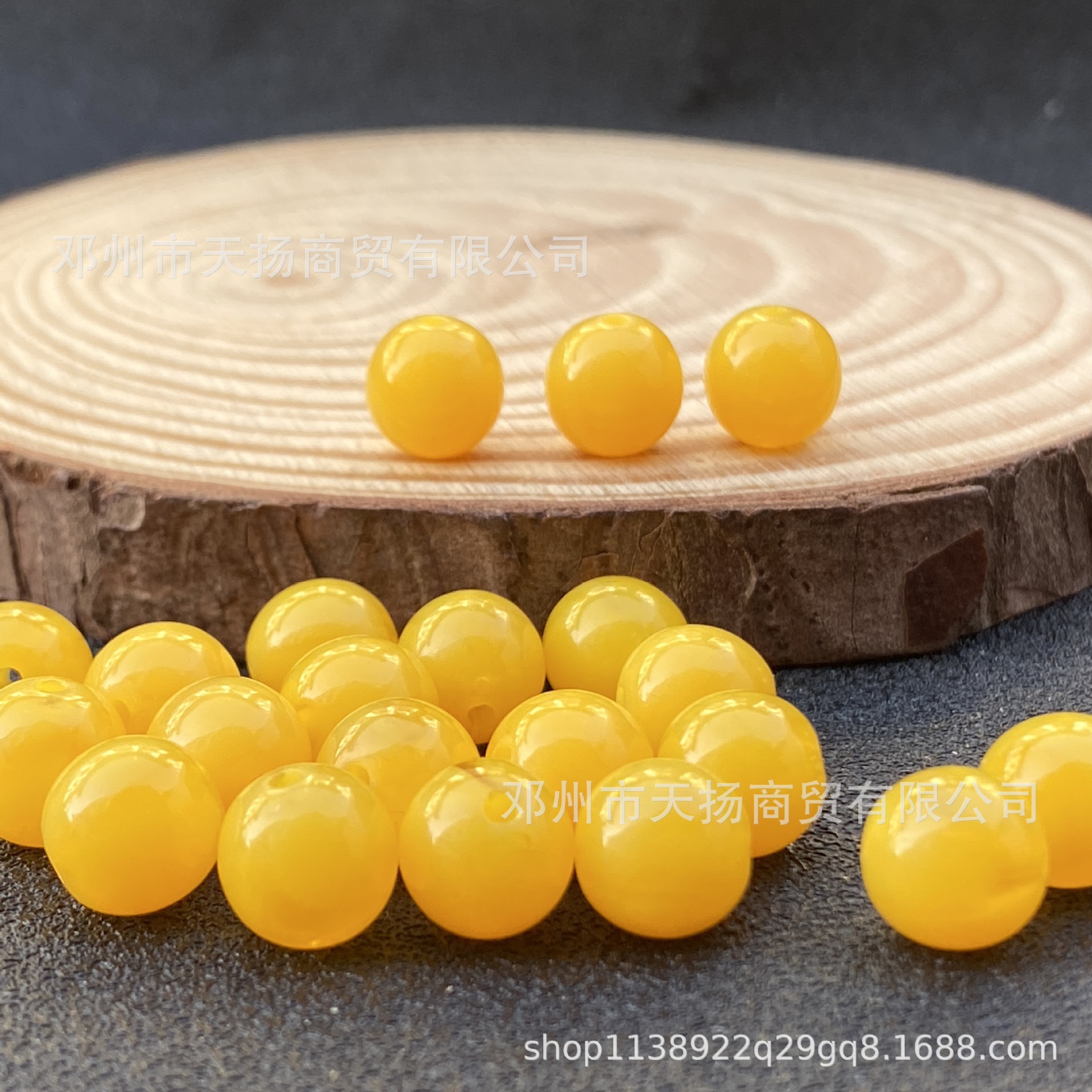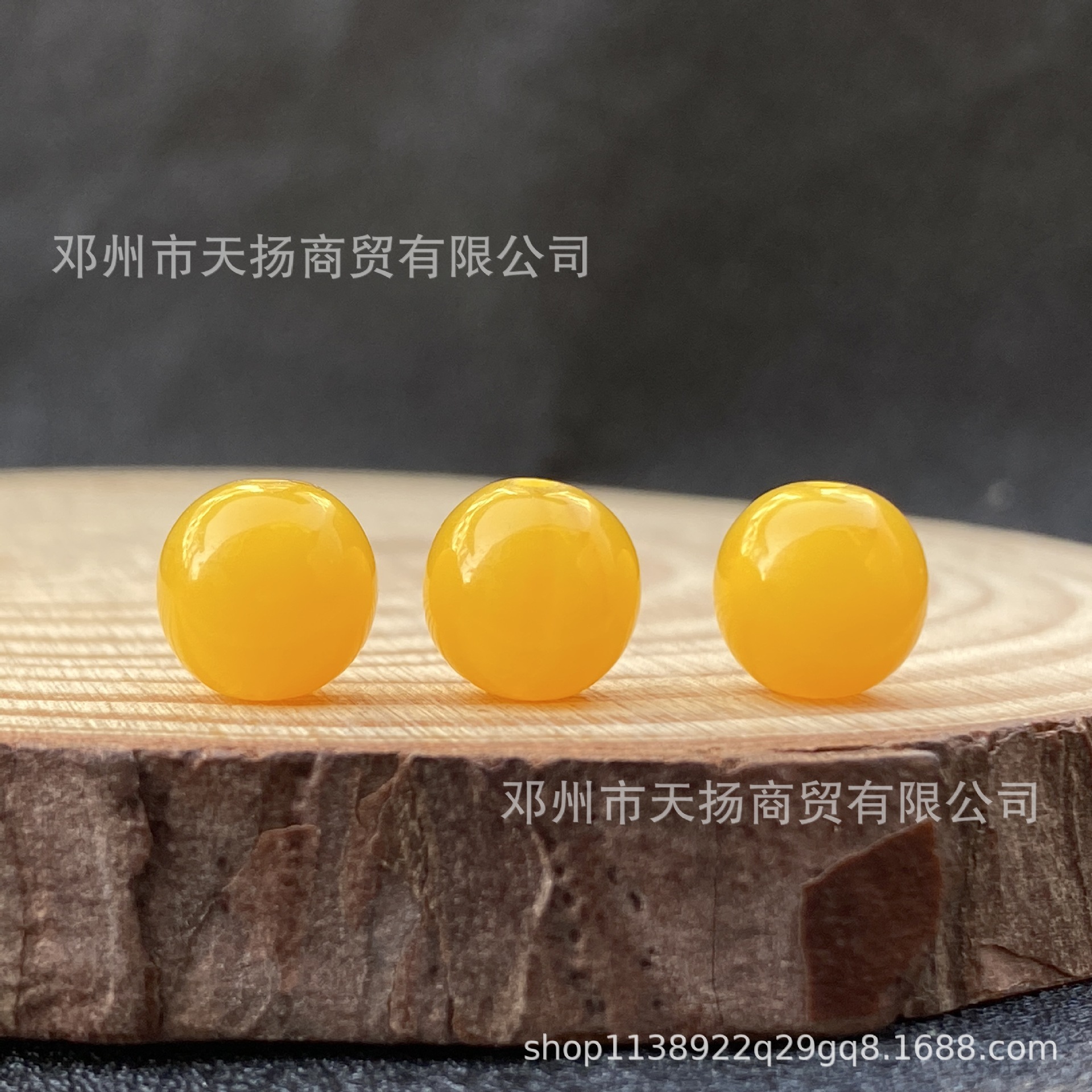黄蜜蜡色玉髓散珠鸡油黄饰品串珠配件圆珠半成品diy手工手链批发