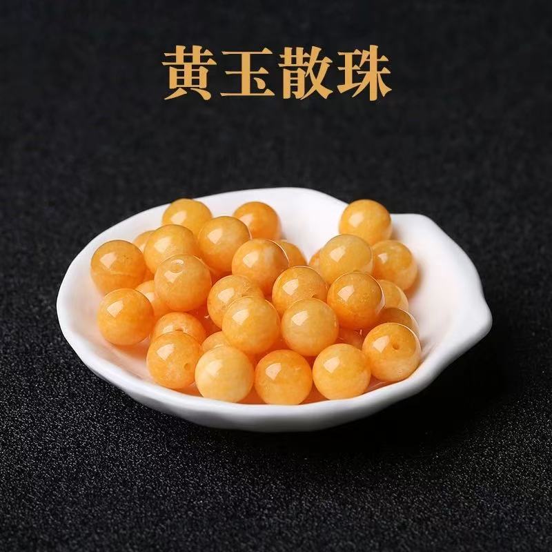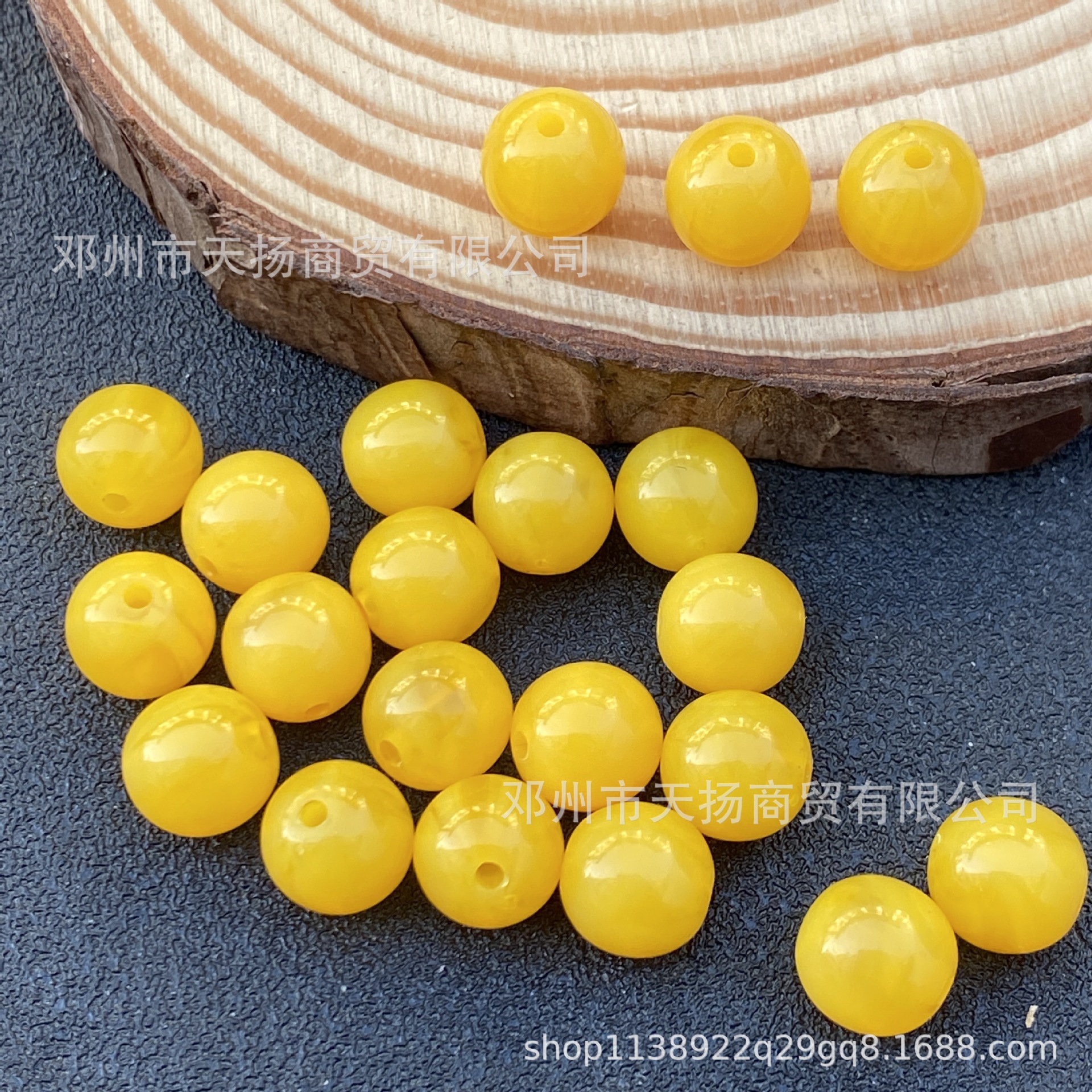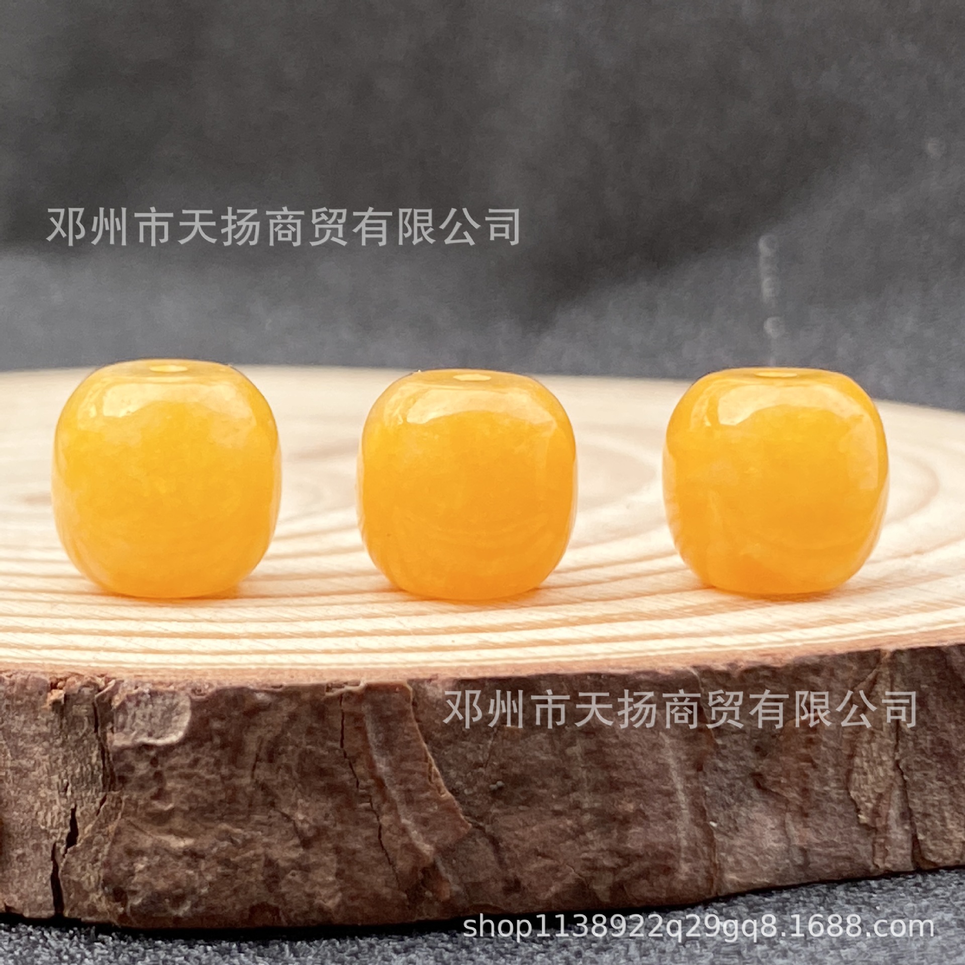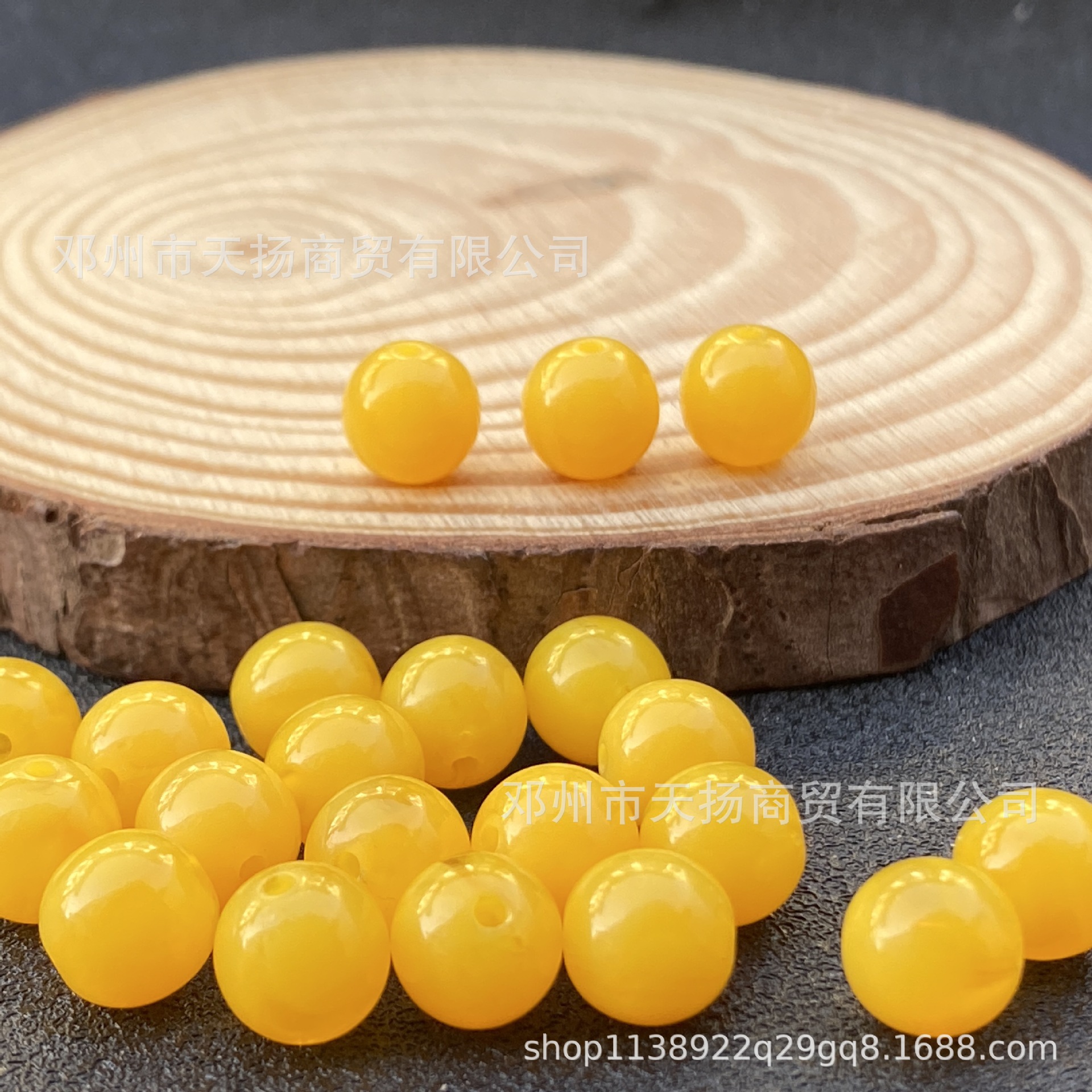 黄蜜蜡色玉髓散珠鸡油黄饰品串珠配件圆珠半成品diy手工手链批发