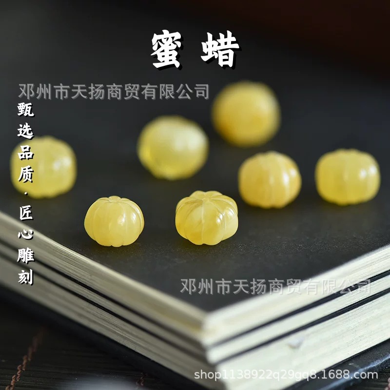 二世代のミツロウの鶏の油と黄の彫刻の平かぼちゃの琥珀色の散珠のアクセサリは珠の半製品のdiyの手の串を配合して卸売りします。