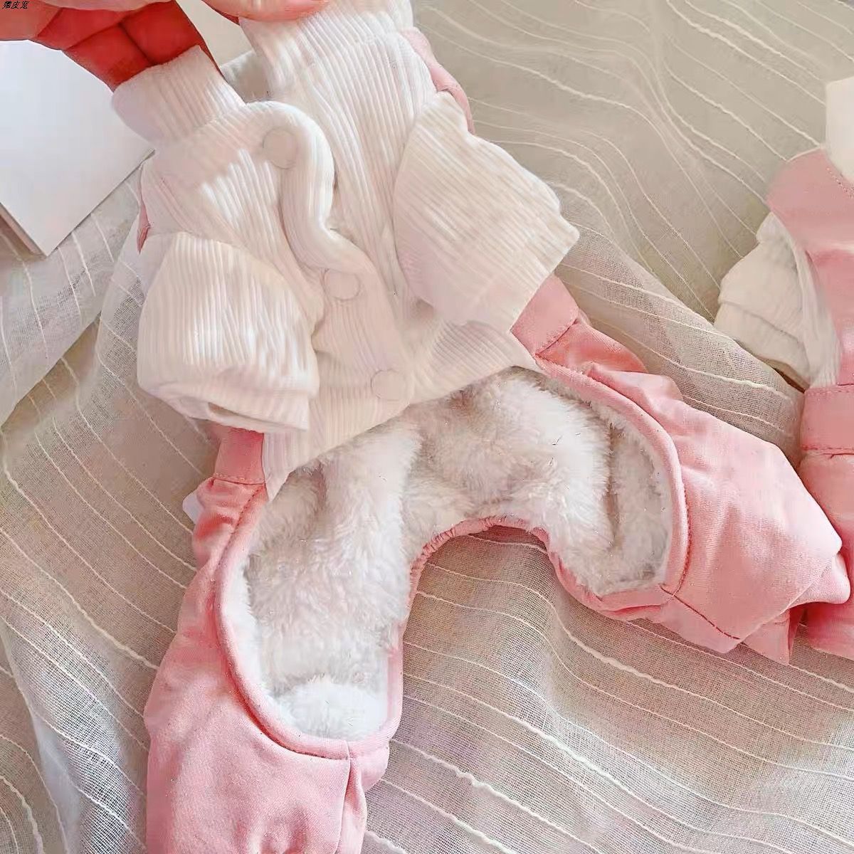犬の服四足秋冬のピンクのシェリー小型犬ペットのお姫様のスカートとベルベットのバックパンツのネットレッド