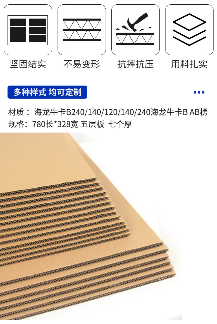 段ボール卸売り780 * 328AB段ボール5階板宅配便包装段ボール7枚厚段ボール紙