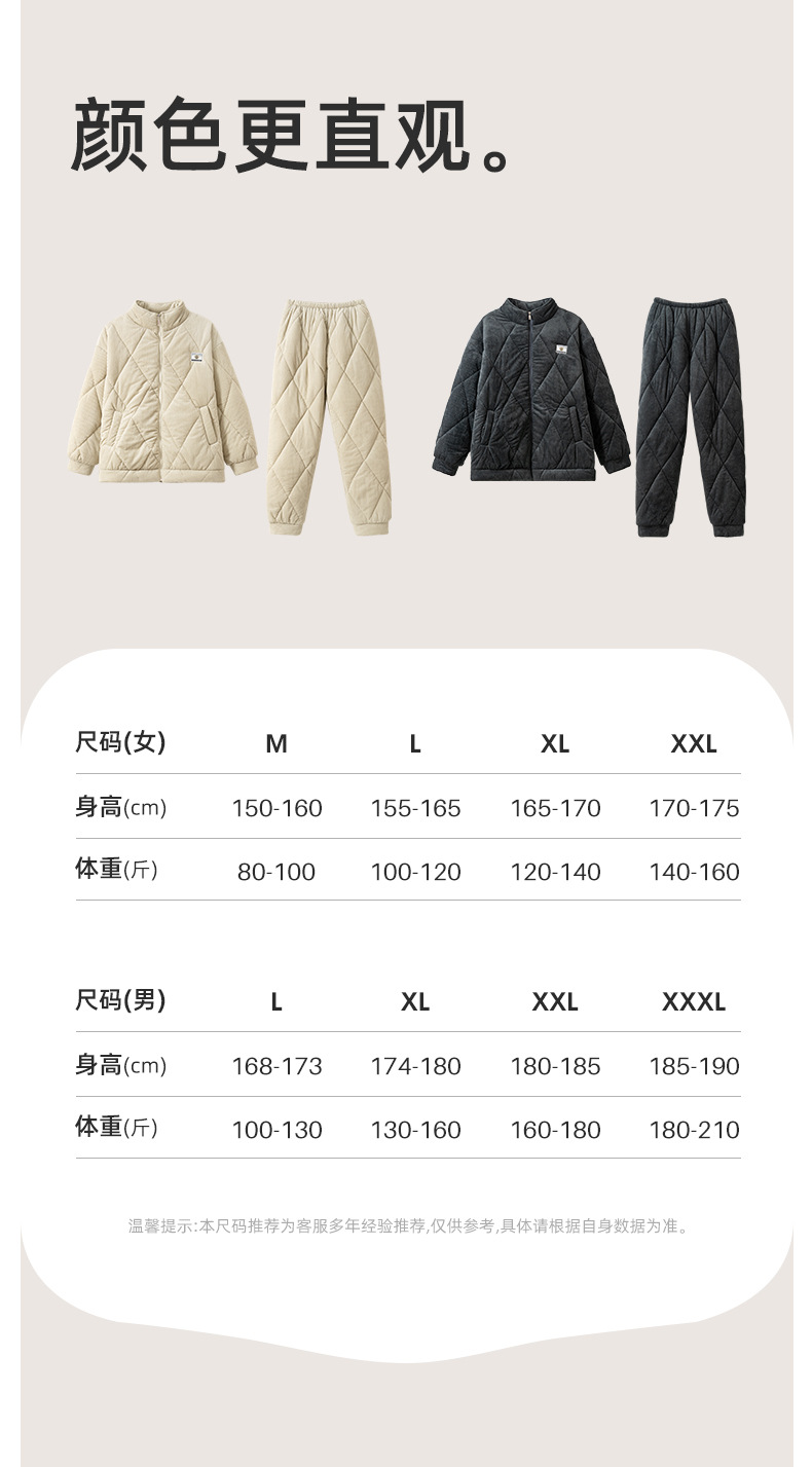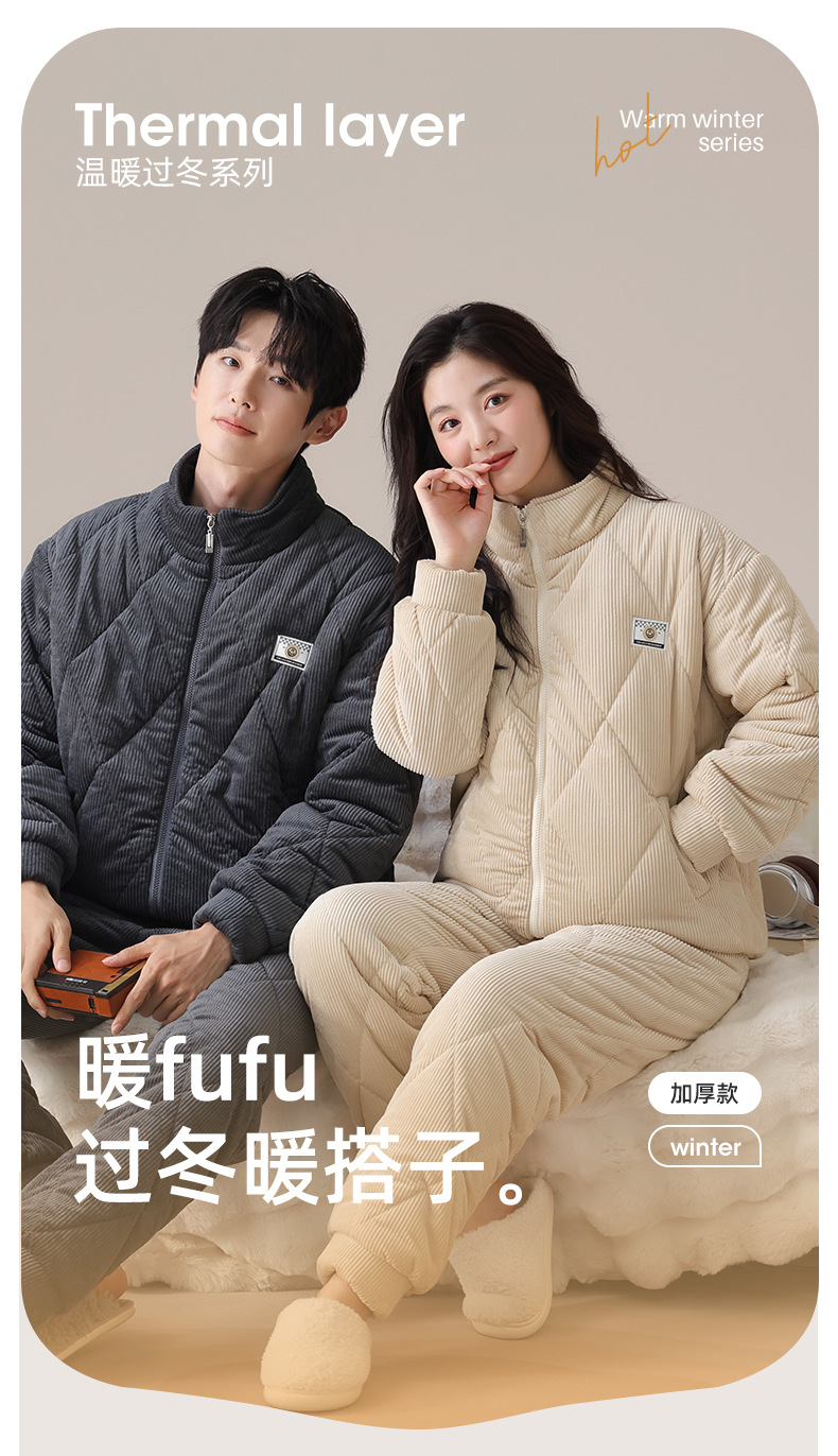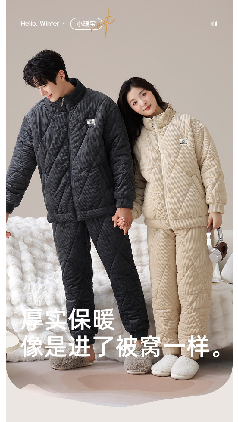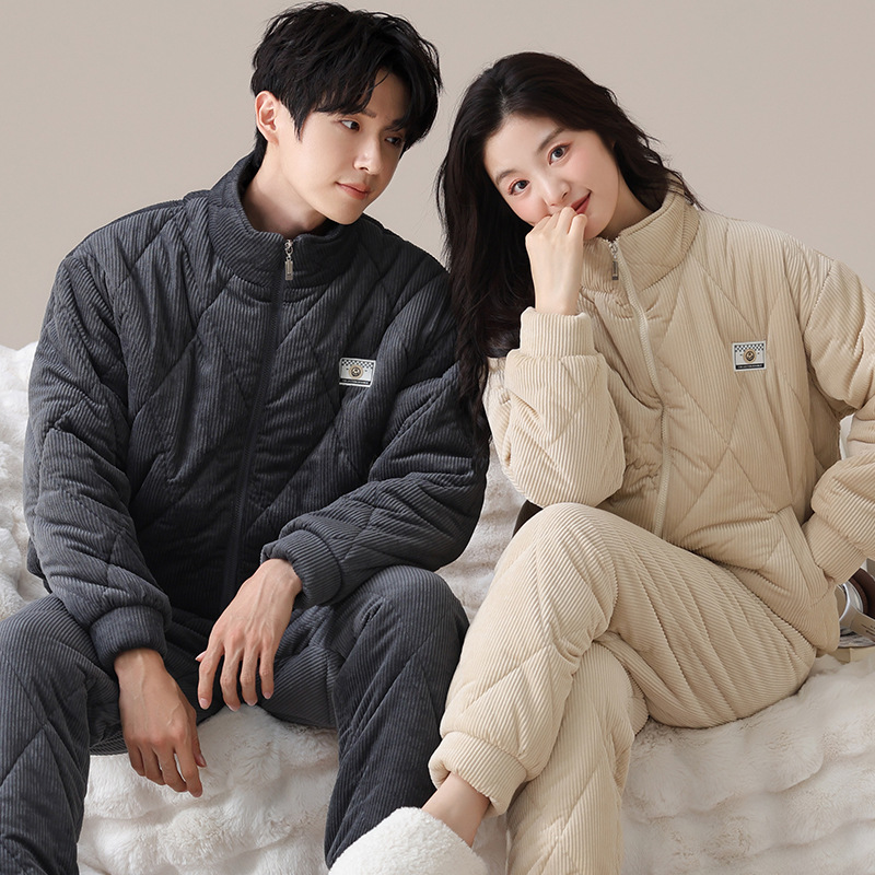 冬のカップルのパジャマの三層は綿を挟んで保温しています。