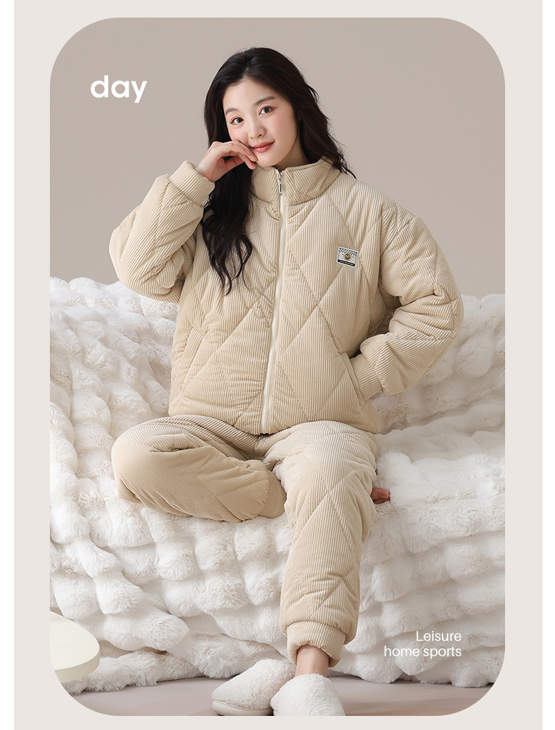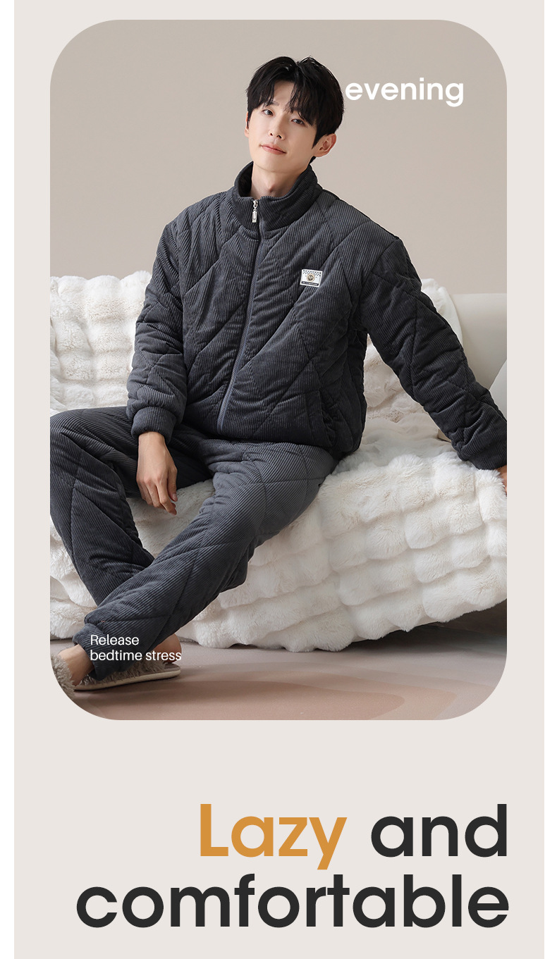 暖かい冬の三層の綿を挟んでパジャマを厚くします。