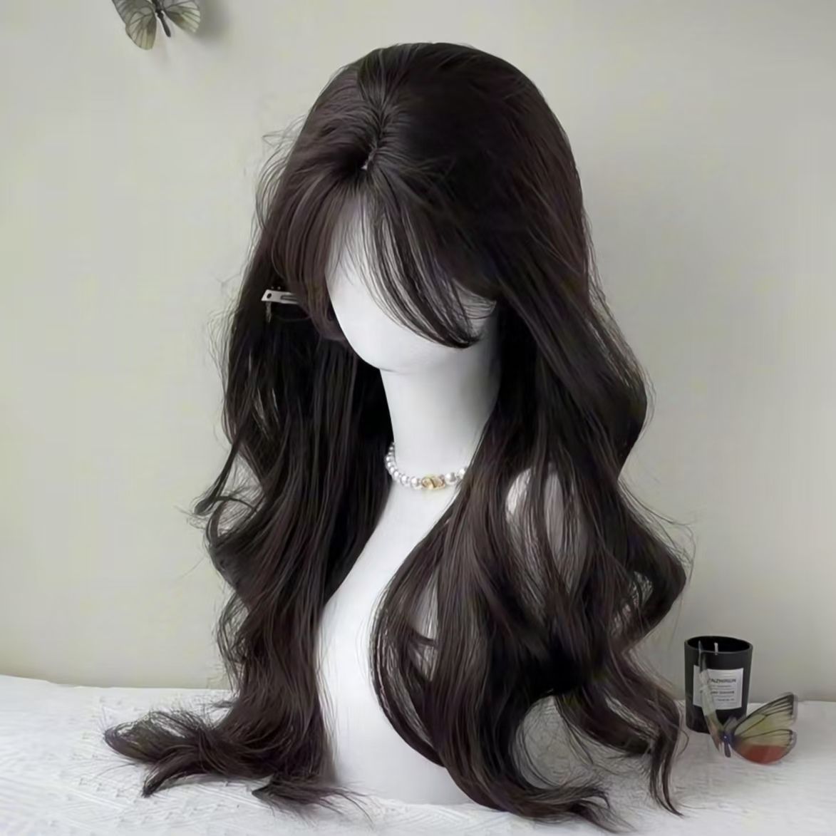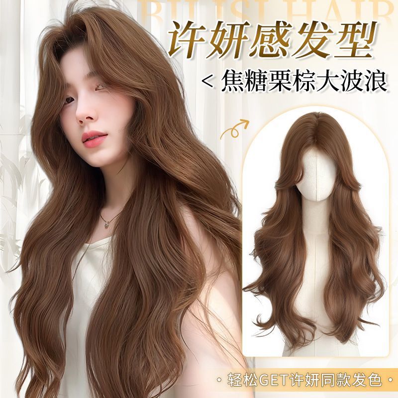 【気質学姐】かつら女気質日常黒茶色中分修顔大波長カール全頭カバー式