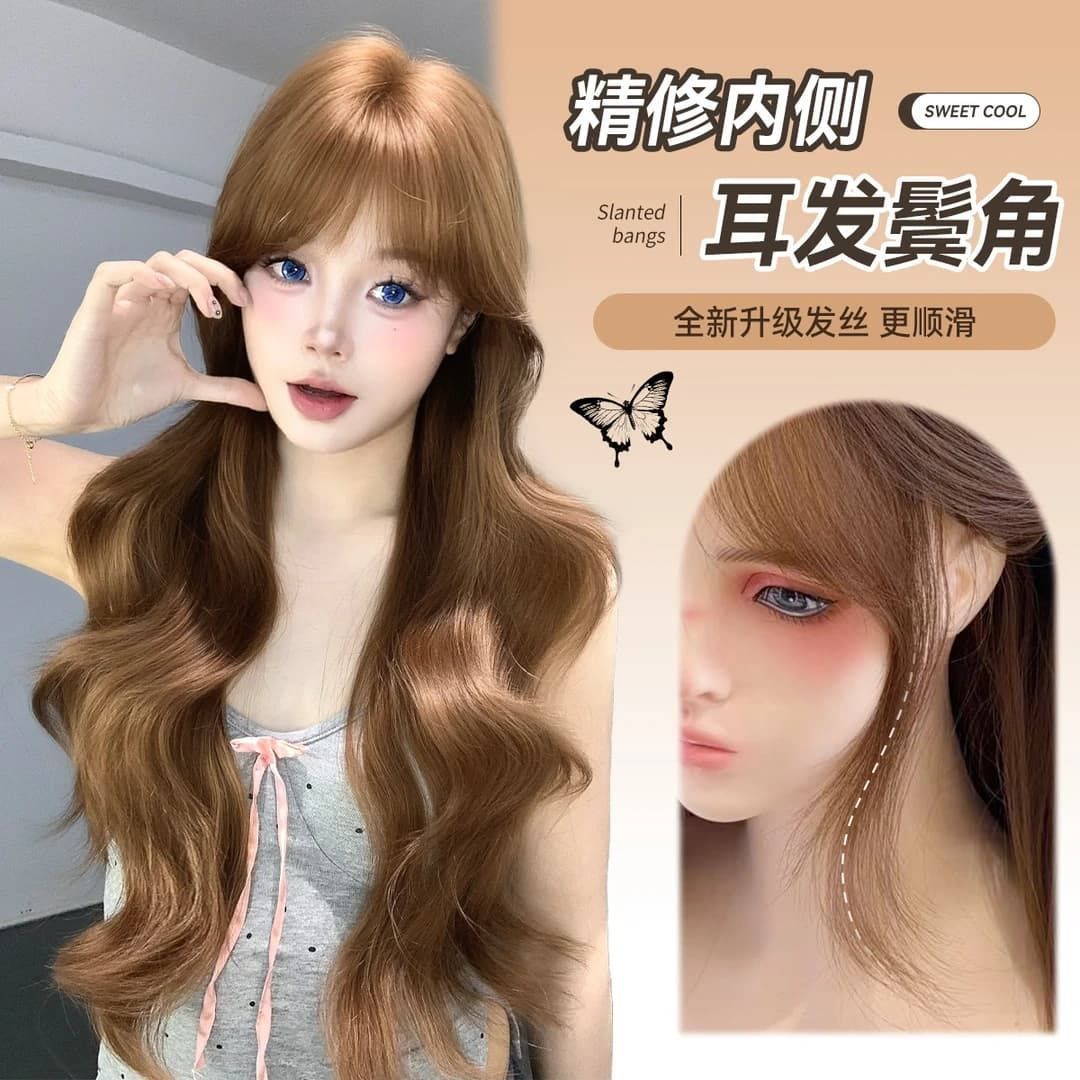 かつらの髪型 長い巻き毛は前髪を平らにしたり、斜めにしたりすることができます