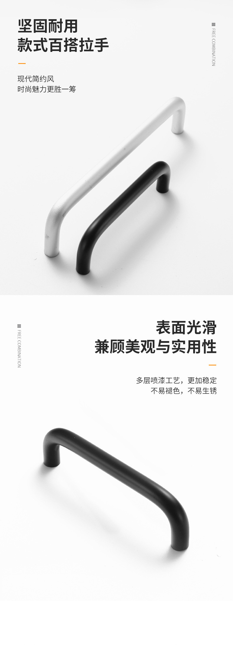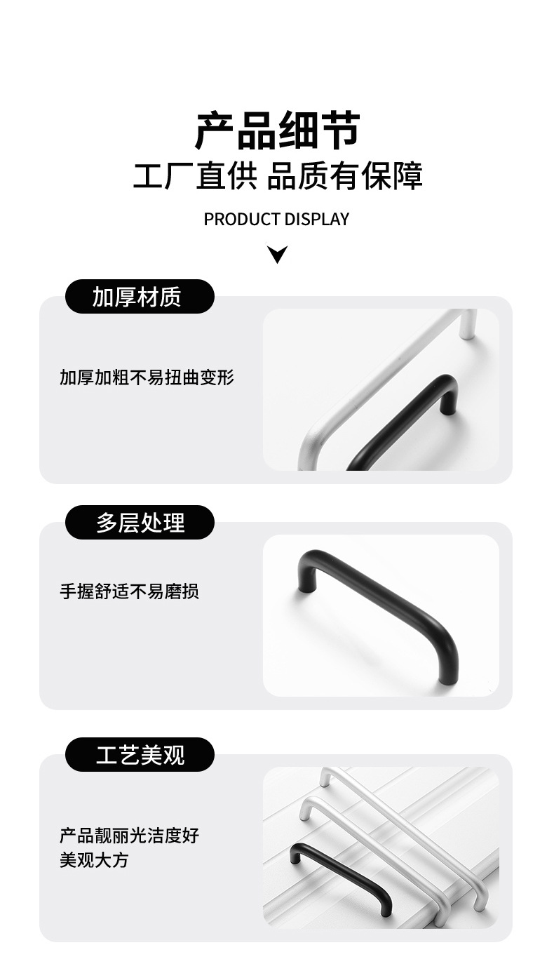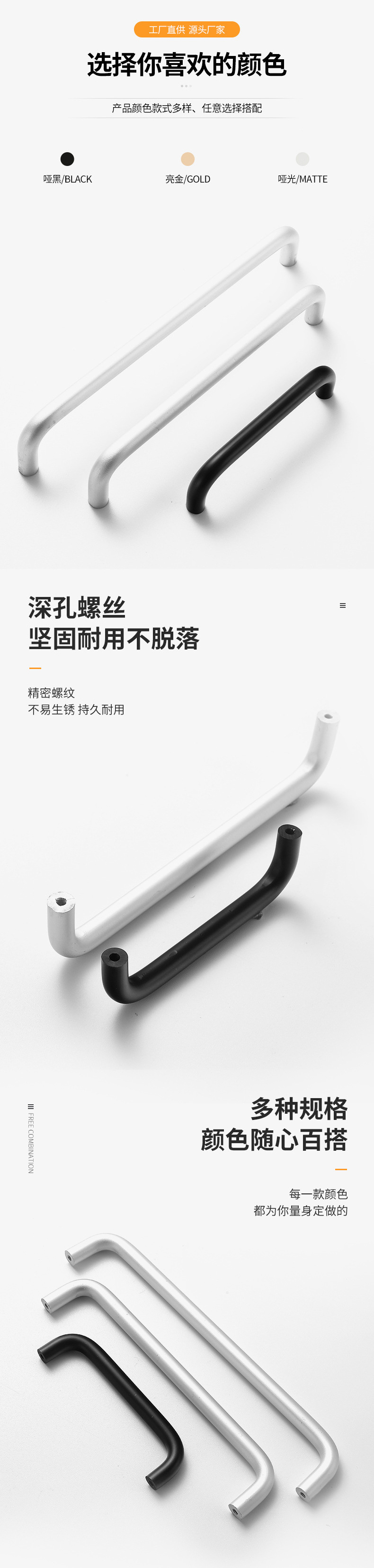 アルミニウム合金丸管キャビネットドアハンドル、キャビネットソリッドハンドル、厚みのある機器ハンドル、子供用U字型酸化アルミニウムハンドル