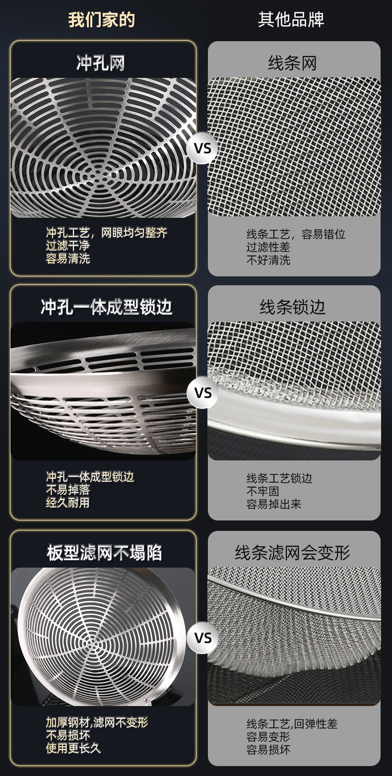 不锈钢漏勺304食品级大号家用厨房316漏勺火锅笊篱油炸饺捞面勺