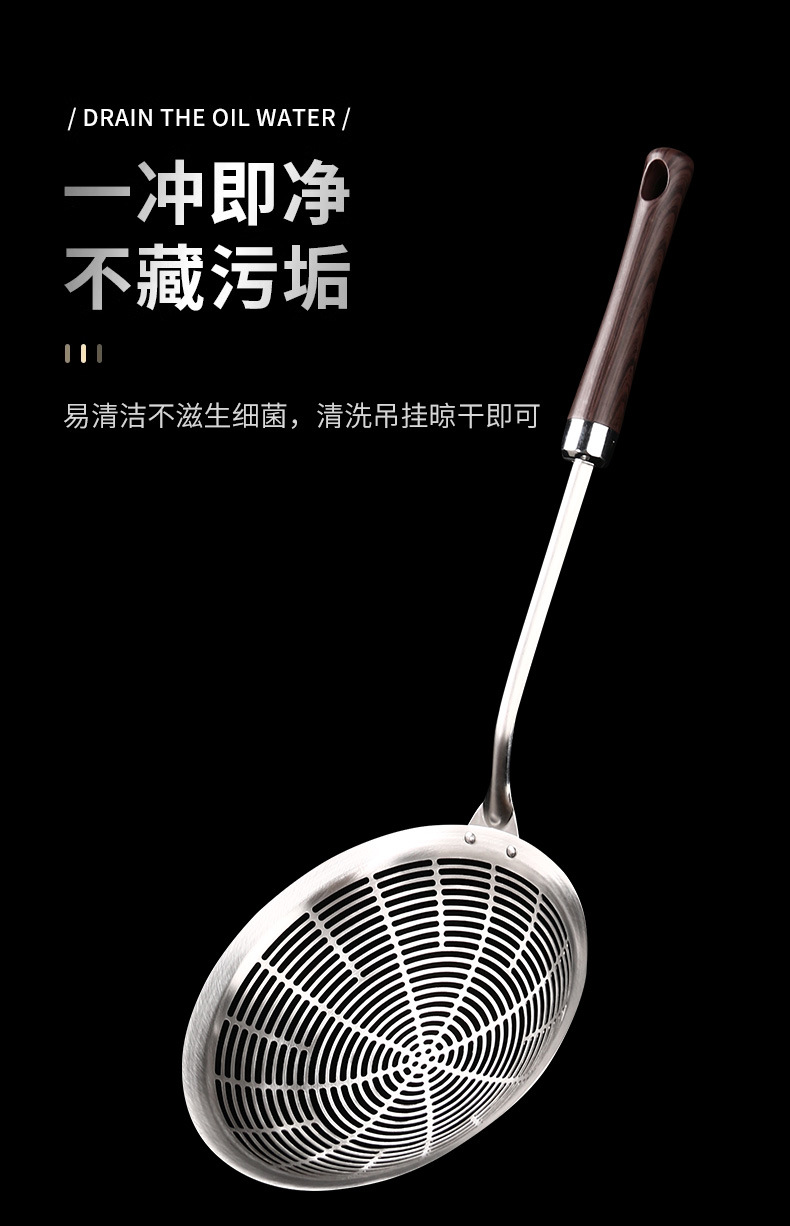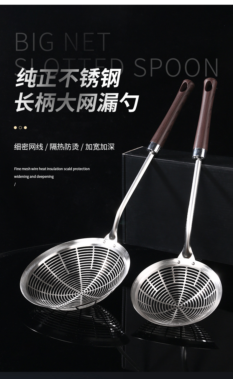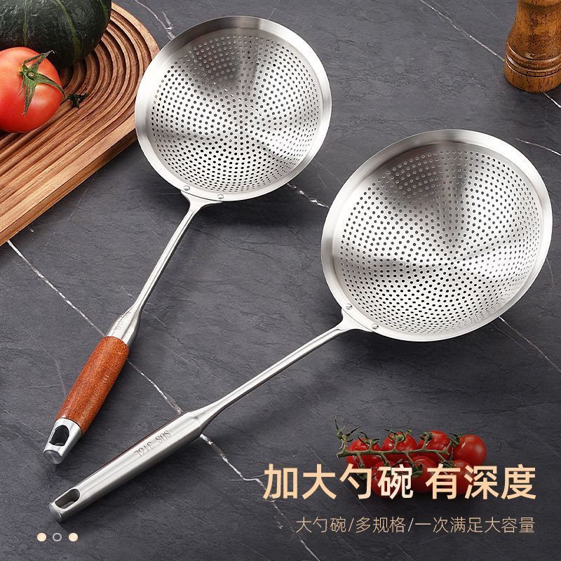 304ステンレス大型食品級フライパン家庭用の網抜き餃子の長い柄のスプーンをすくって水を流します。