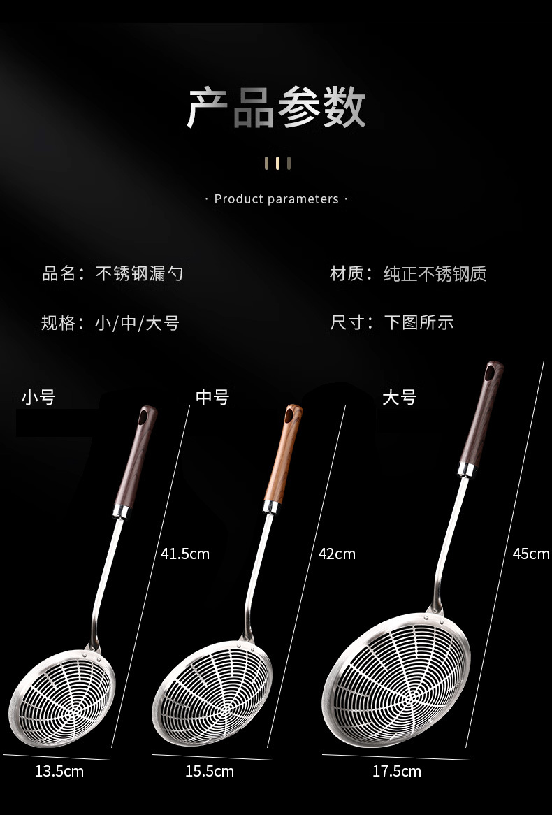 不锈钢特厚漏勺火锅家用饺子一体成型笊篱捞面厨房过滤网捞勺