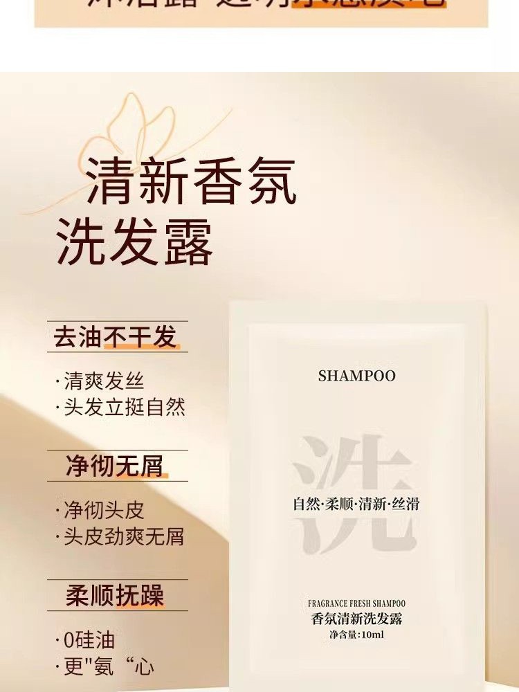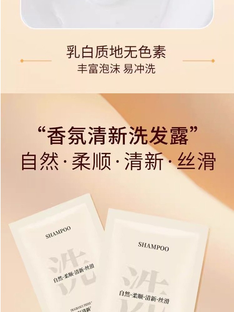 使い捨て袋入りシャンプー入浴剤ホテル民宿旅行洗面用品小包シャンプー卸売り