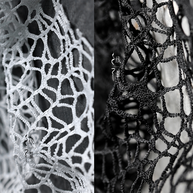 创疫 黑白不规则渔网蕾丝布料网纱裙子服装diy手工窗帘设计师面料